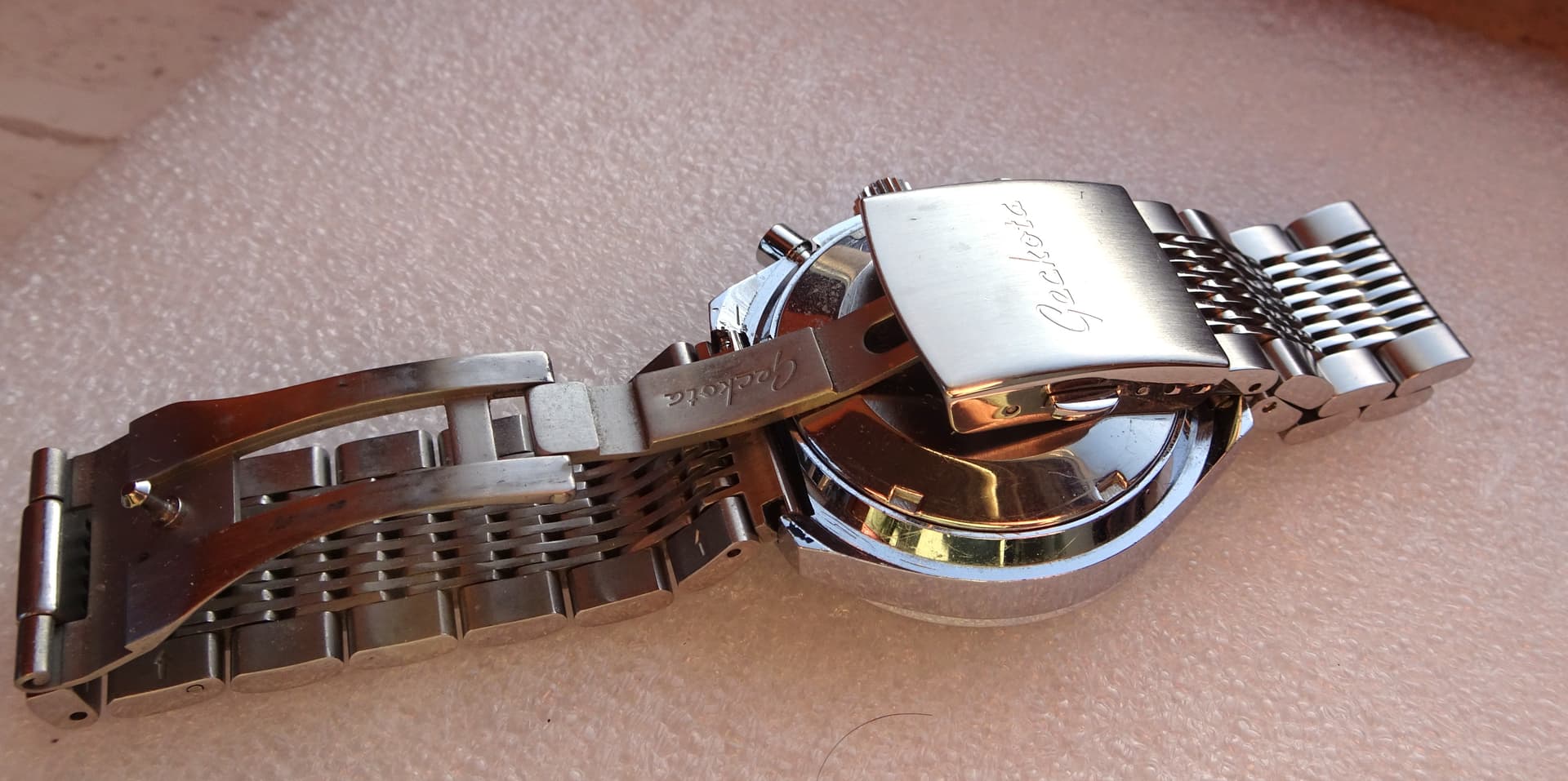 Originele doos en/of eventuele accessoires: etui, stalen Geckota banden en vervangen stukken van horlogemaker