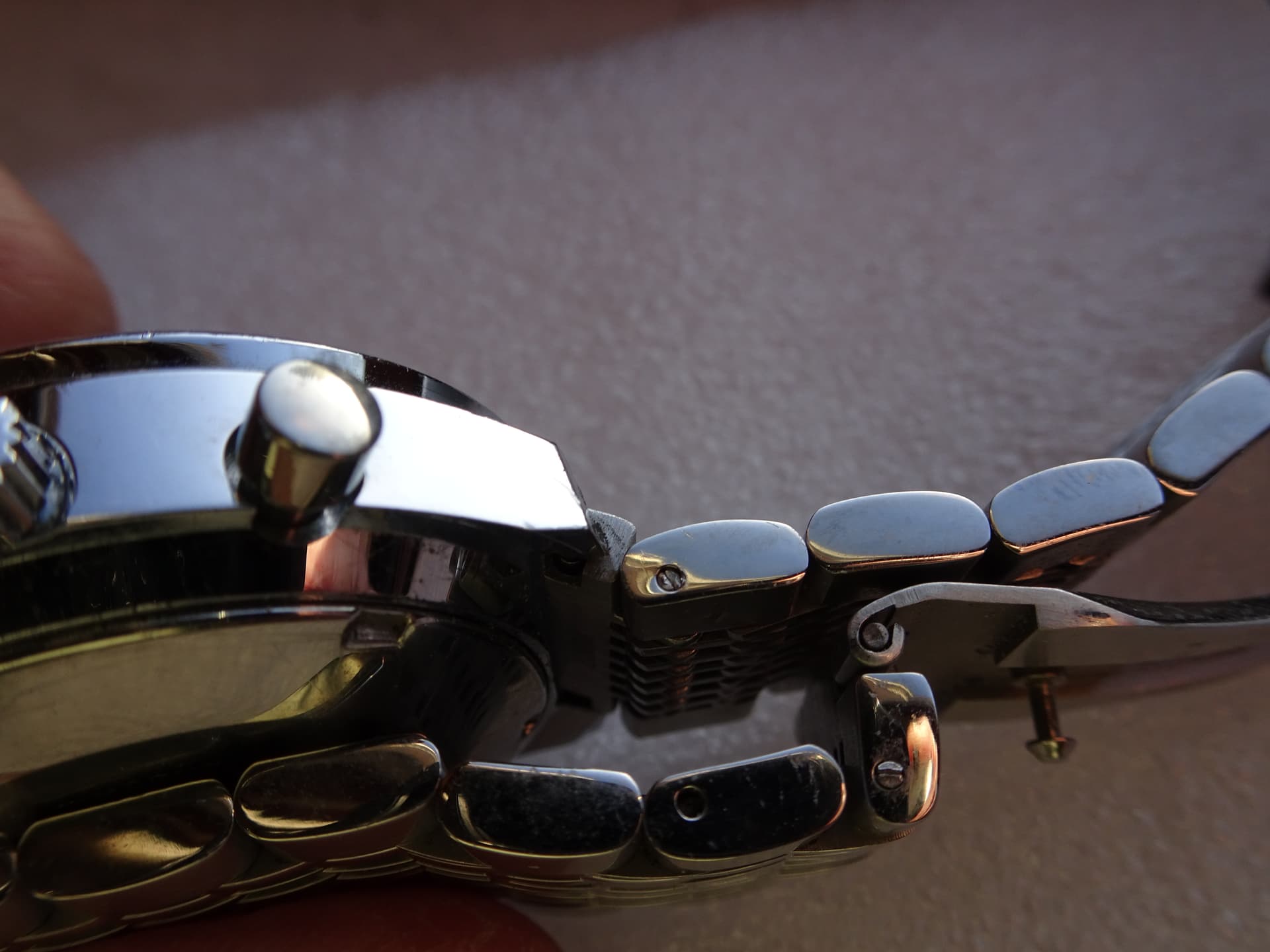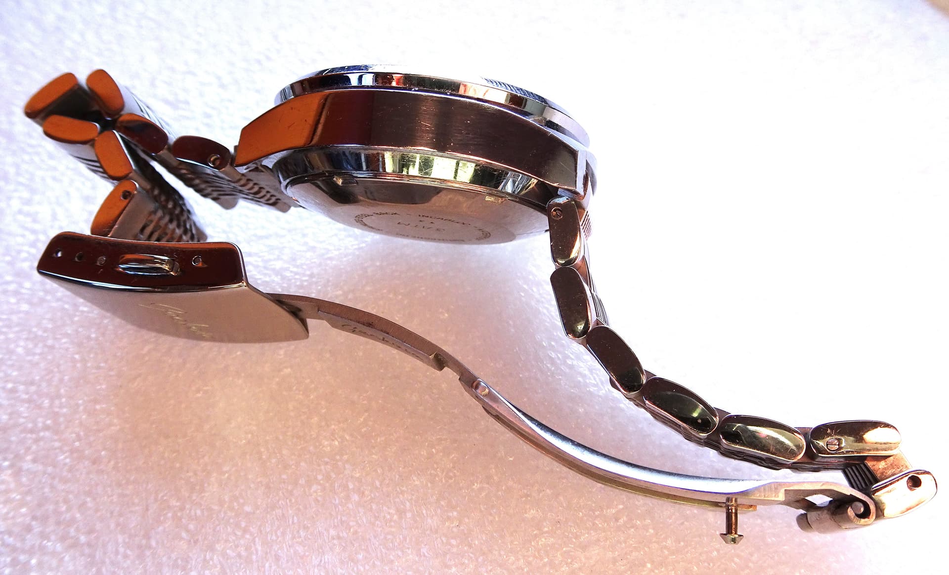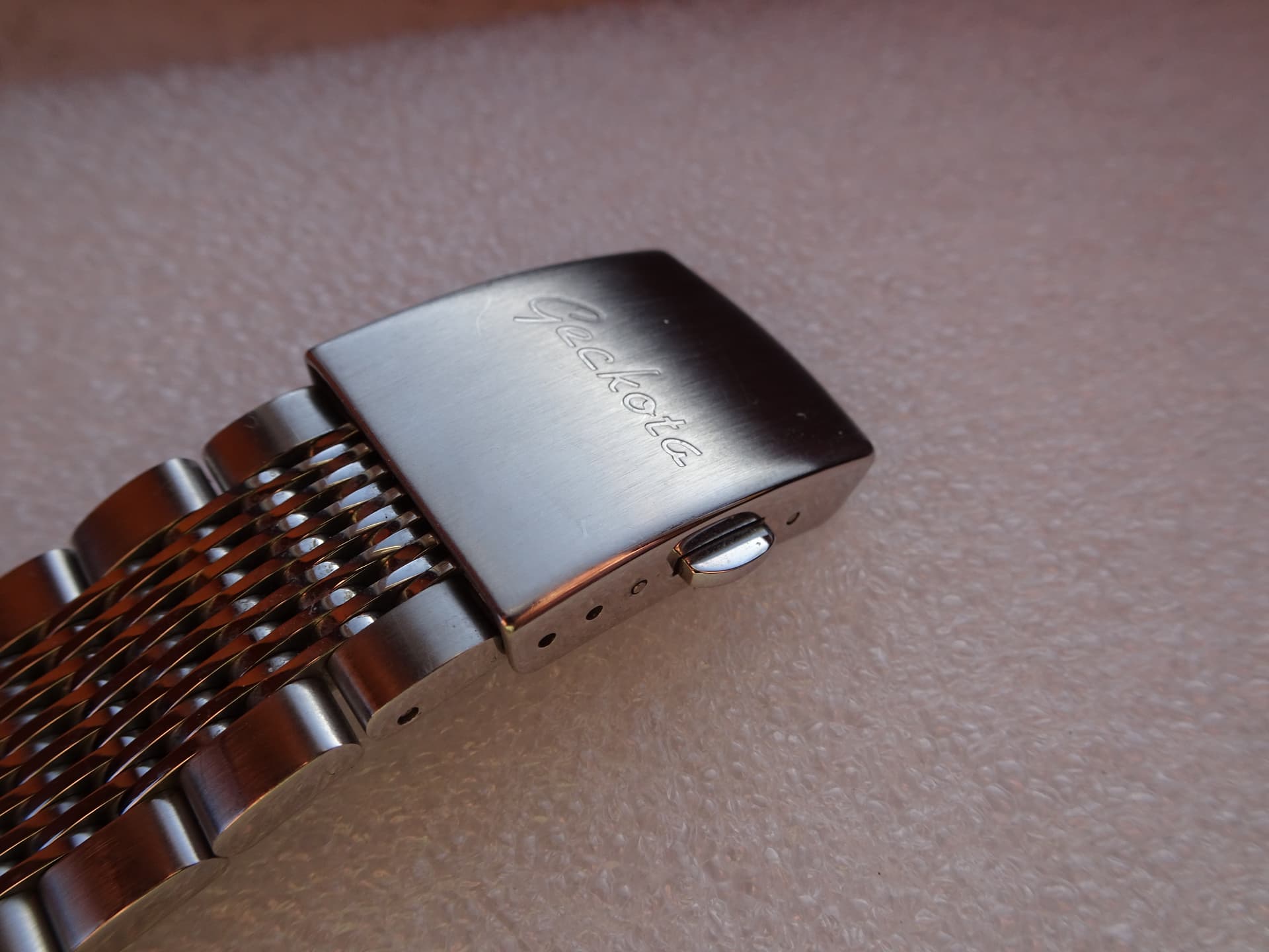 Mooie, en kwaliteitsvolle Geckota stalen band, en evt zwartlederen pilotenband
