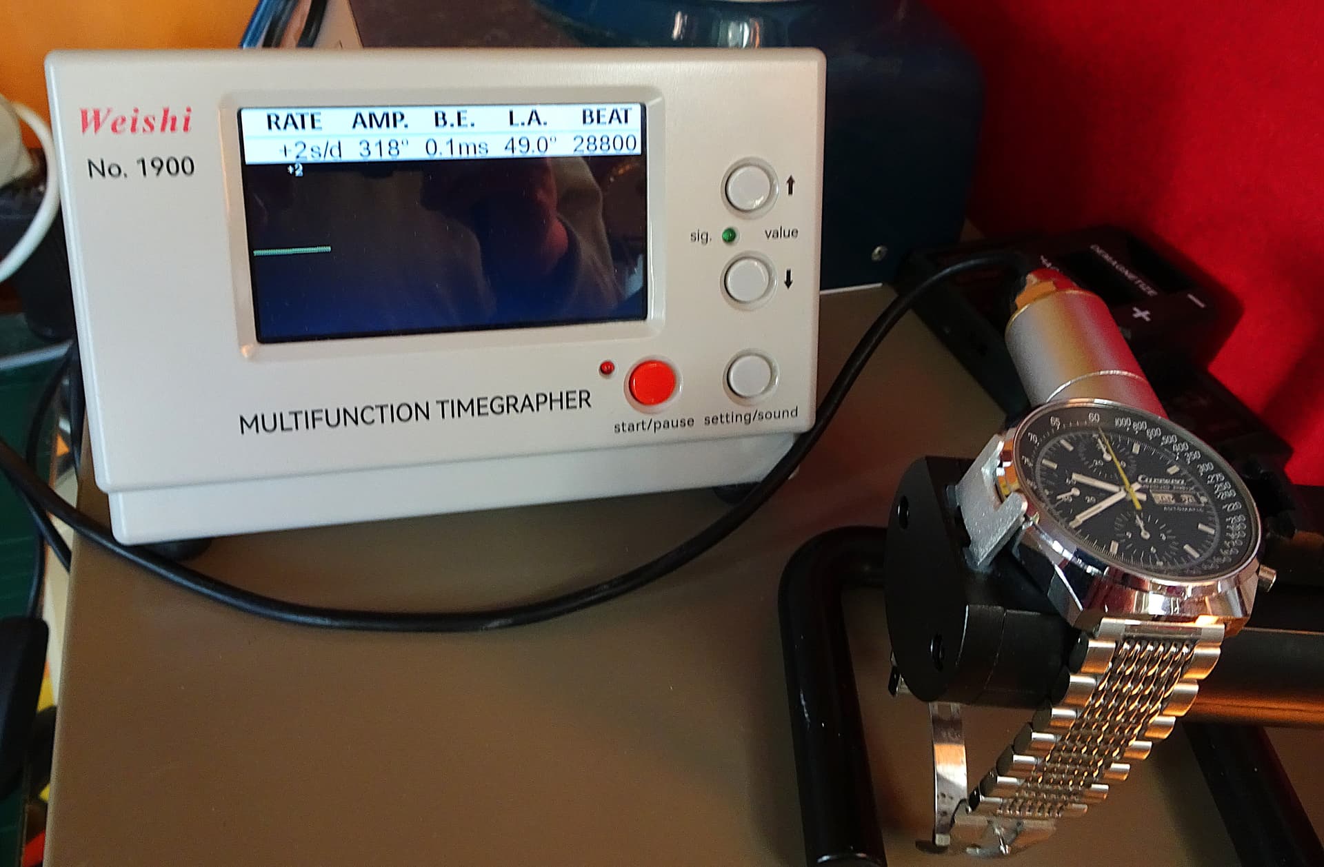 Werkt als nieuw (recente revisie). Zie foto op de timegrapher