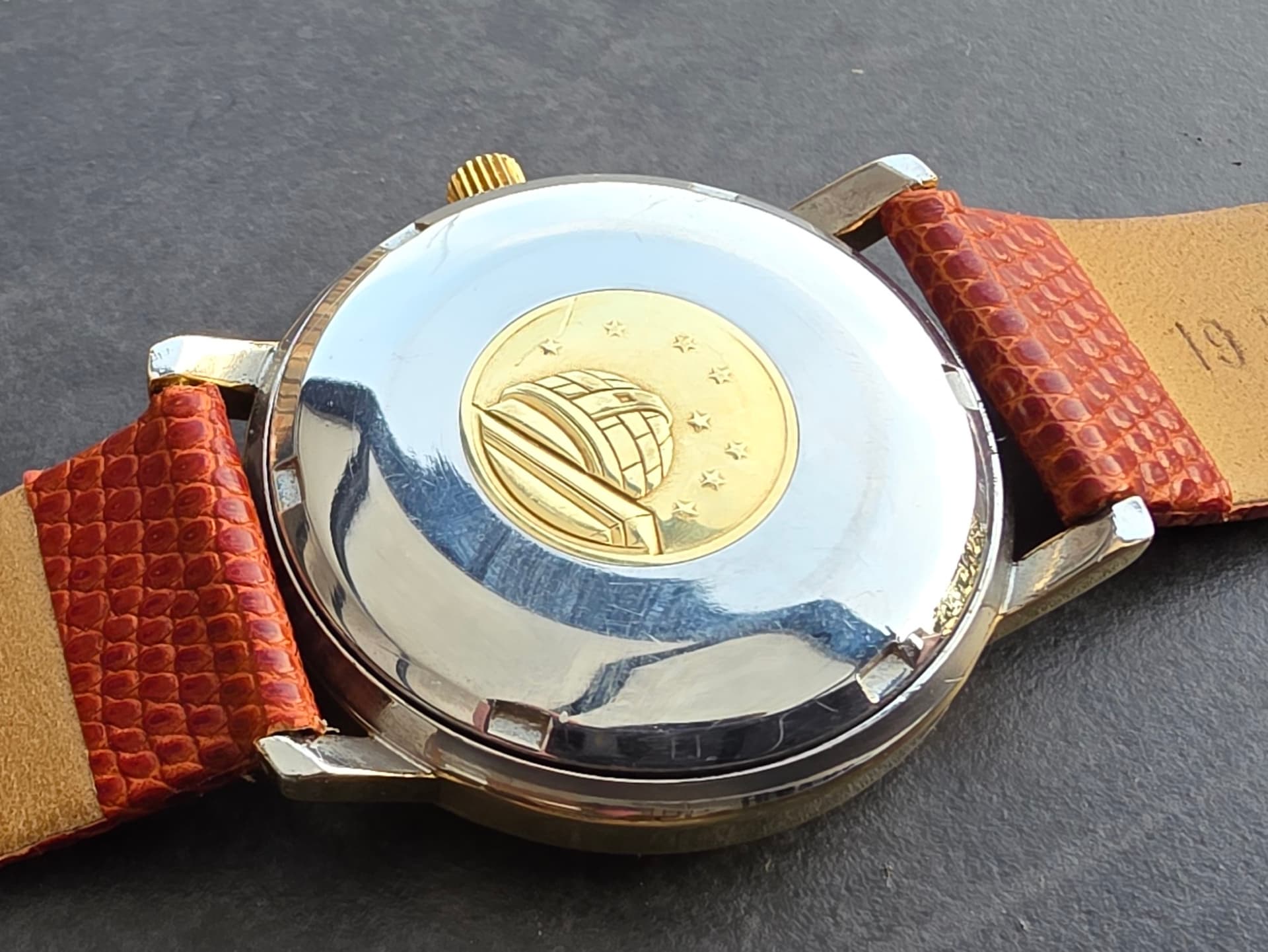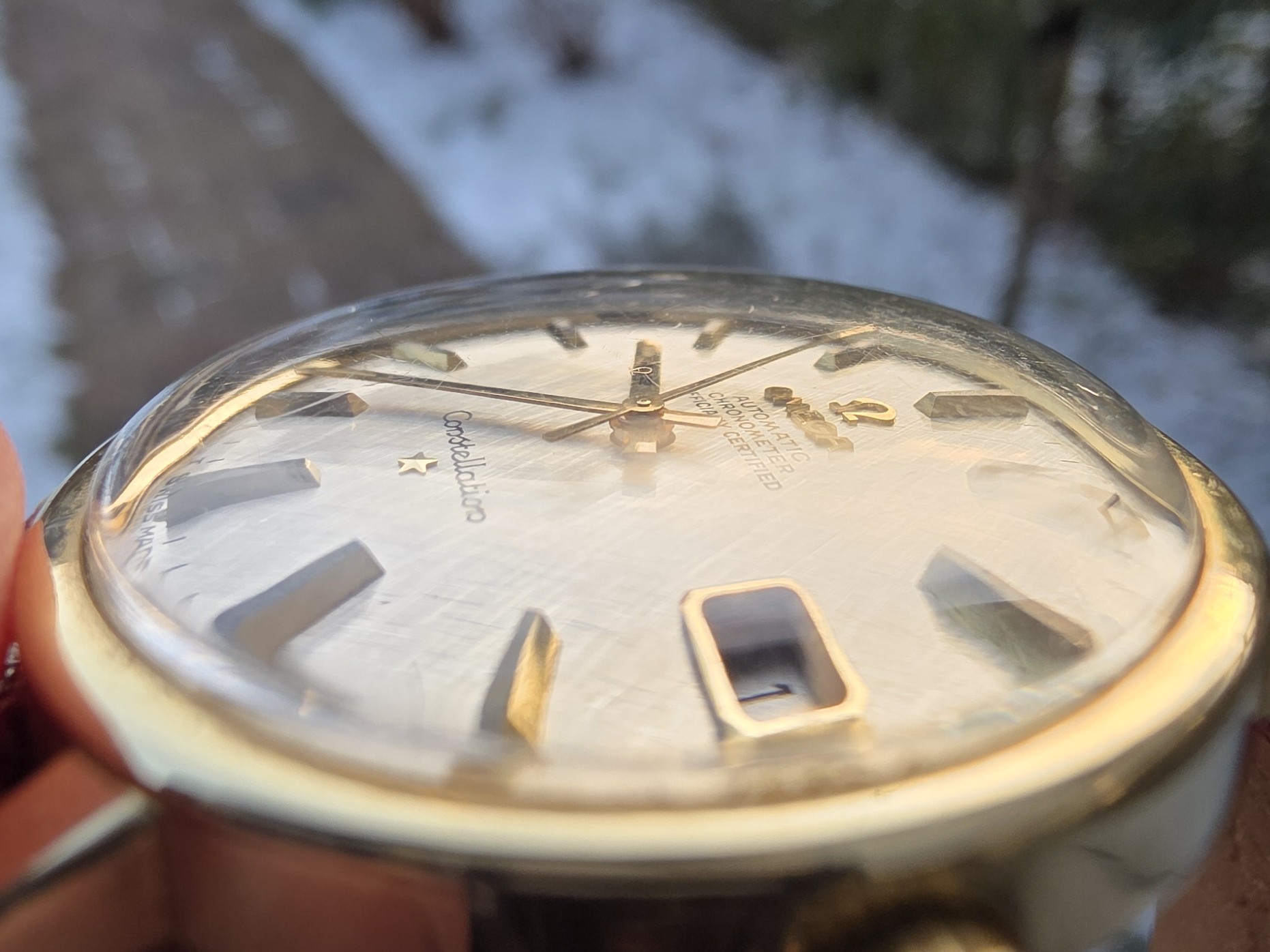 Volgens mij zijn er delen verguld en is alles origineel, zie bv. mini omega logo midden in het acryl glas