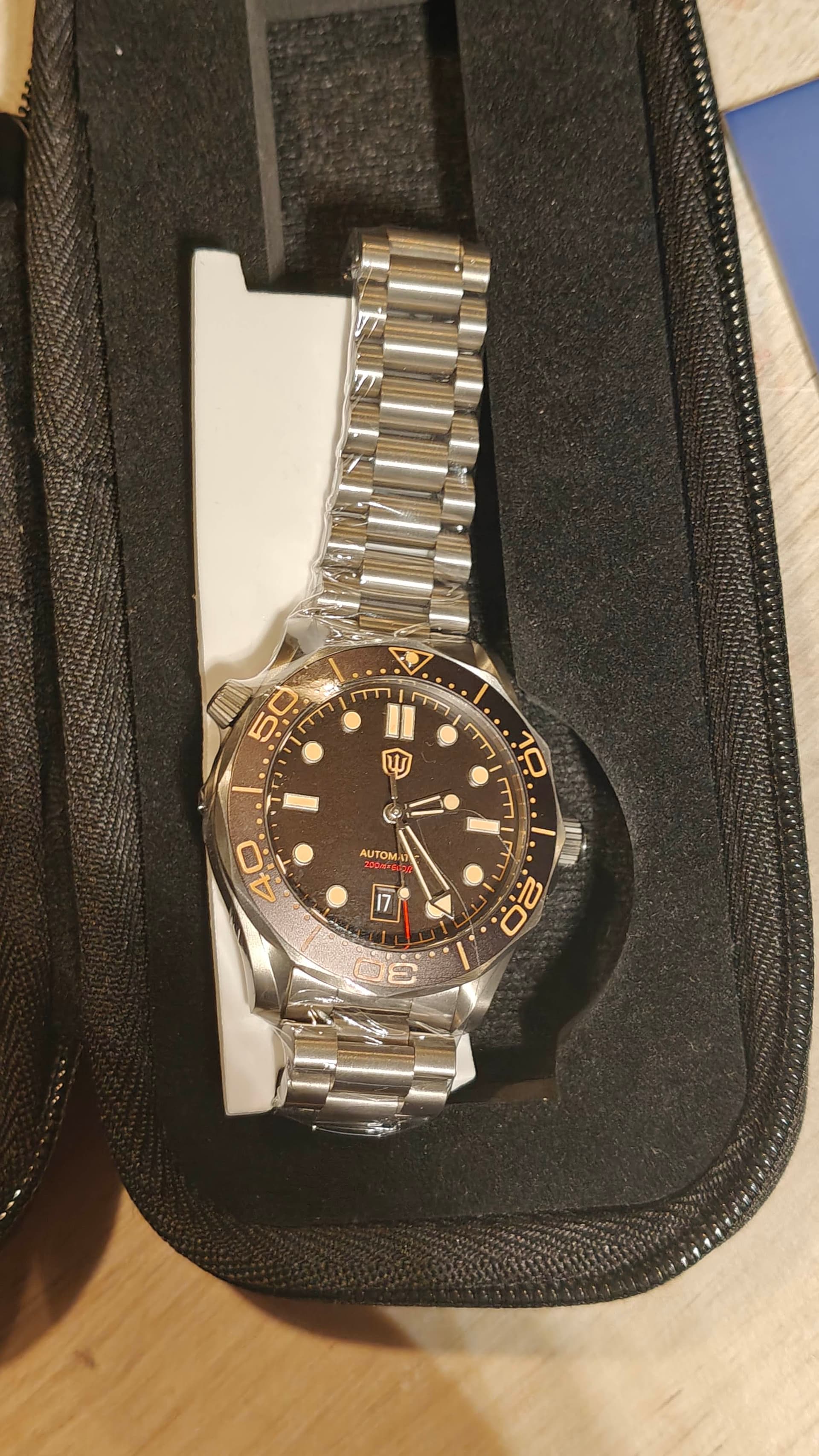 Horloge zit nog volledig in de stickers en komt met een FKM Rubber Watch Strap (zonder buckle)