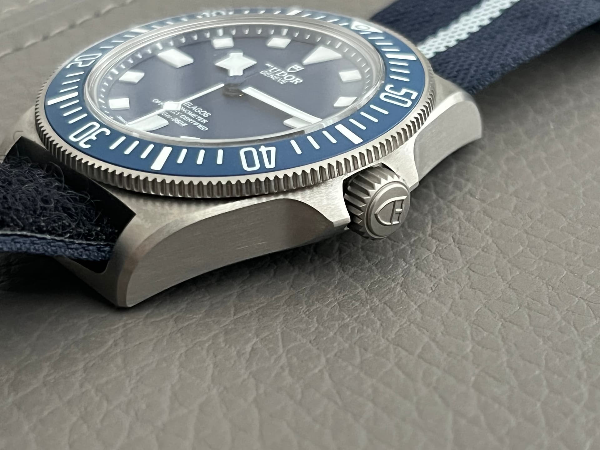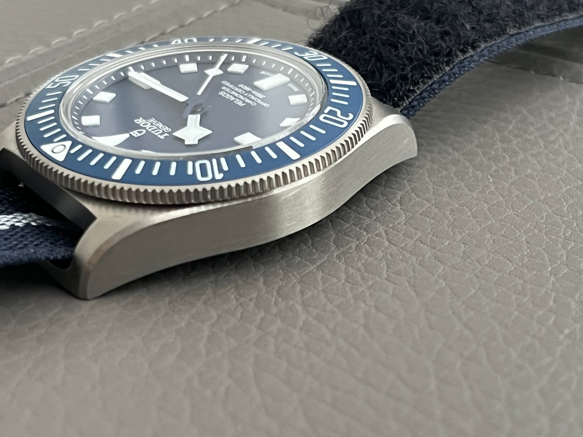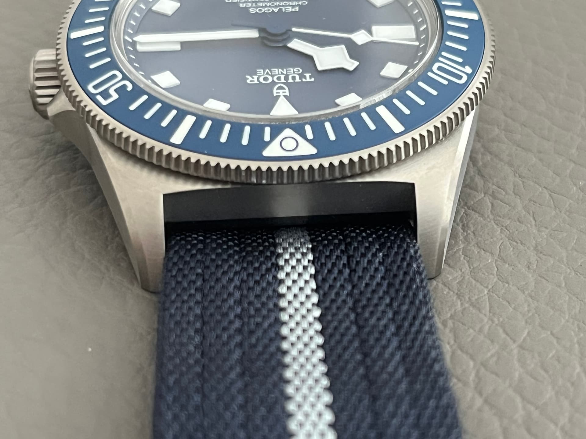 In (ik meen) 2021 kwam Tudor op de proppen met de evolutie van de Pelagos: de FXD met fixed lugs. Aanvankelijk had ik mijn bedenkingen daarbij (want: fixed lugs) maar onderhand ben ik een ware believer. Het draagcomfort en de pasvorm van de FXD zijn namelijk steengoed. Dat in combinatie met de specs en de inmiddels vele horlogebanden die ervoor geschikt/op markt zijn, maakt het een geweldig horloge.