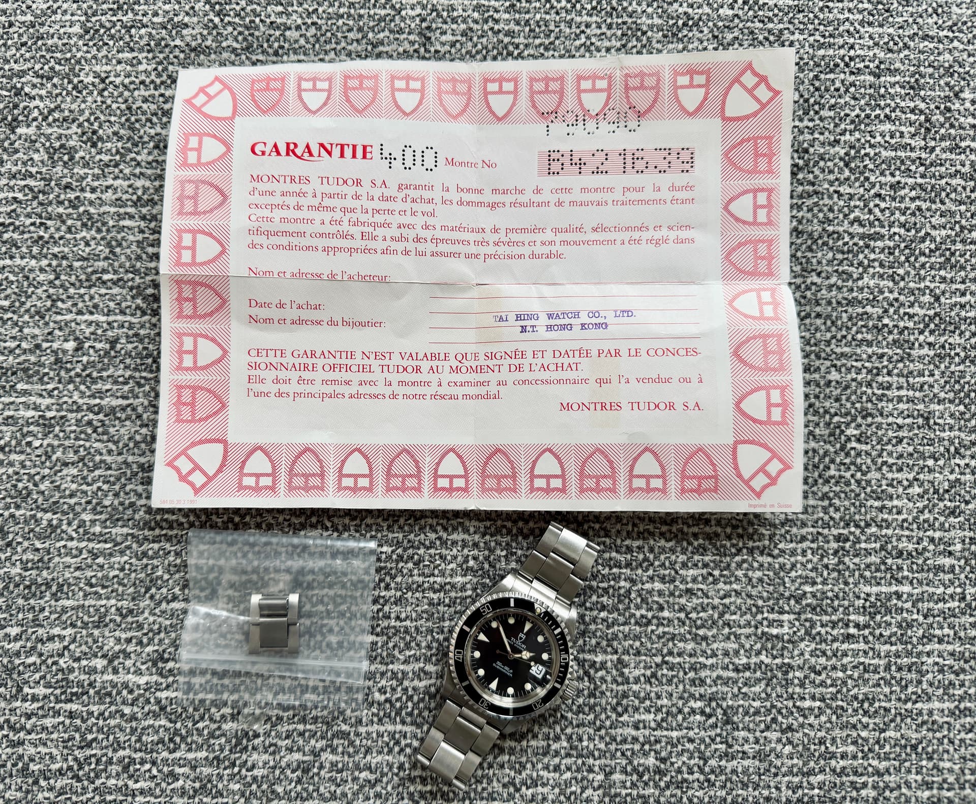 Ik heb me laten vertellen dat dit de laatste Sub met plexiglas was en daarom extra speciaal, ik vond hem gewoon fantastisch knap toen ik hem voor het eerst aan mocht! Deze Sub heeft ook nog z’n originele garantiekaart en twee extra schakels die er nagelnieuw uit zien.