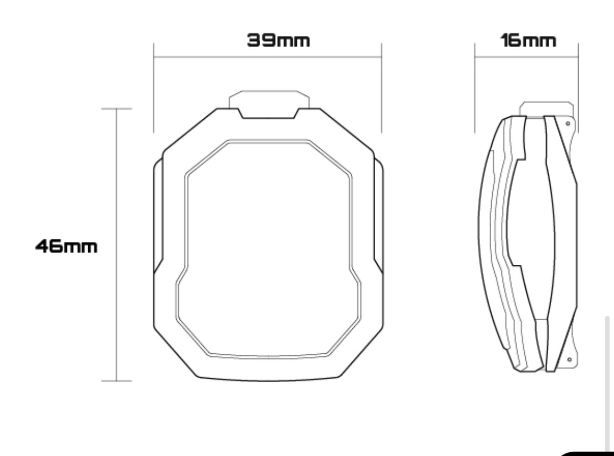 Diameter: 39 mm breedte, 16,0 mm hoogte
