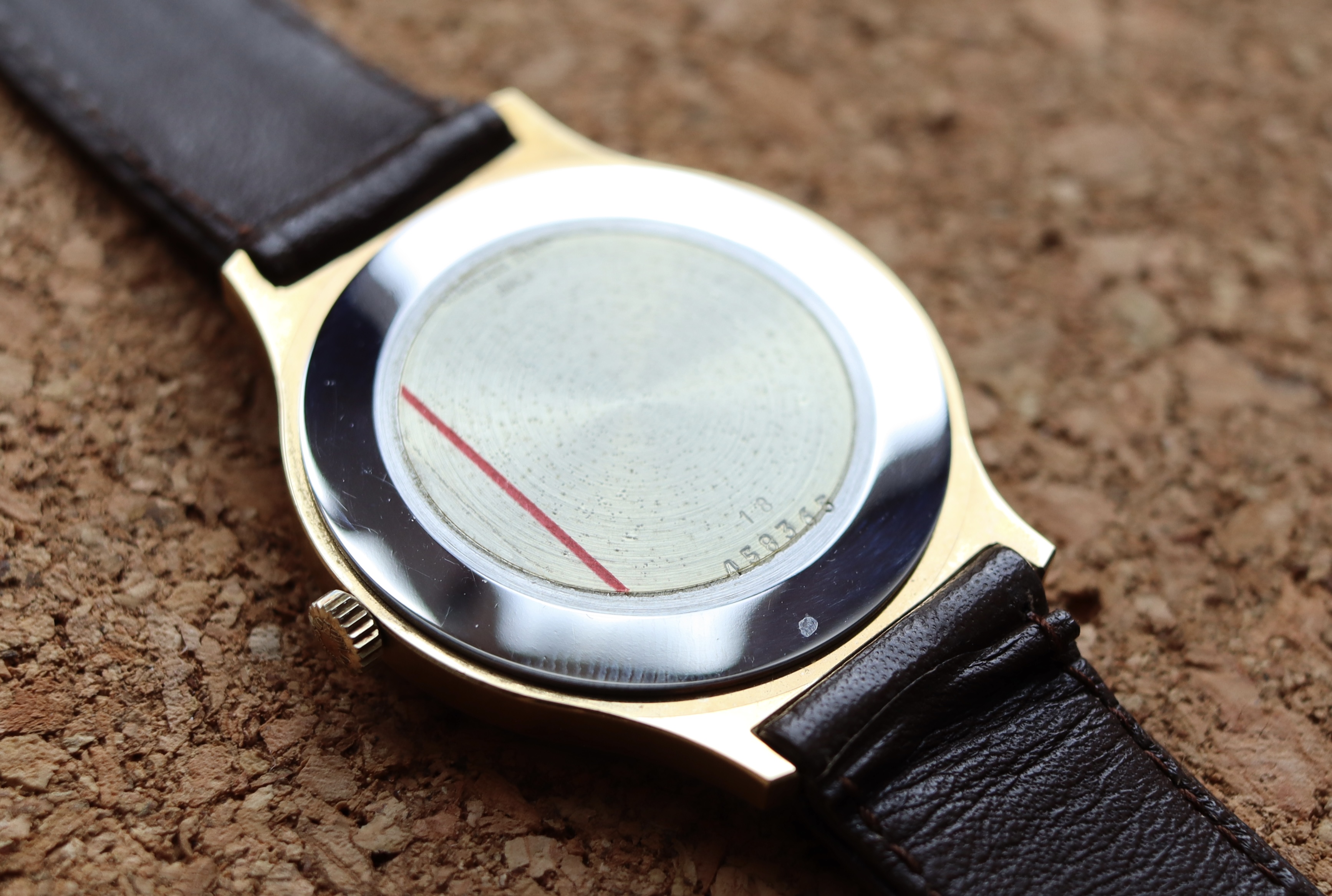 Soort uurwerk en kaliber: Ik geloof Cal. 847 (handopwinder), al ben ik niet 100% zeker. Ik maak hem niet graag open om beschadigingen aan de kast te vermijden.