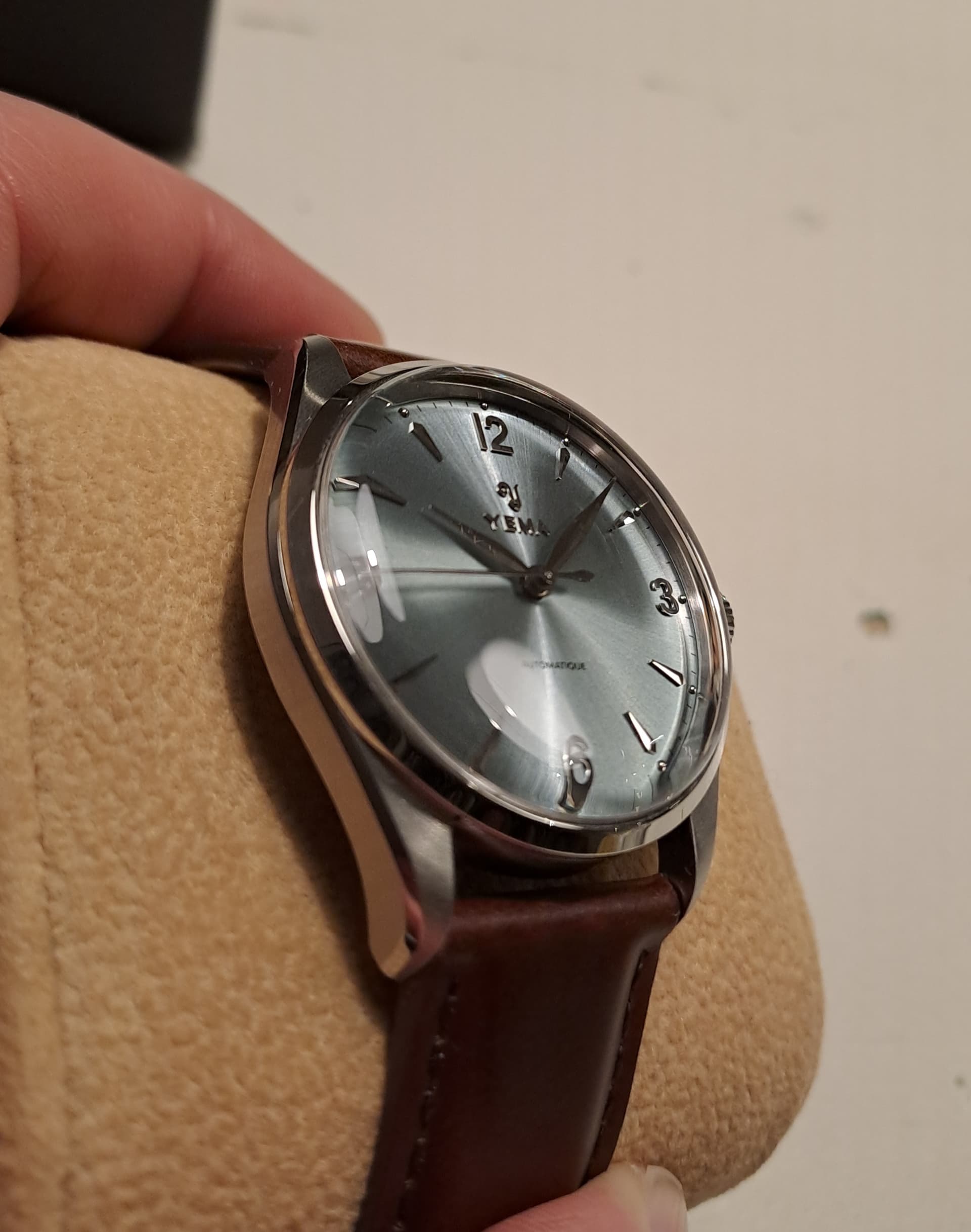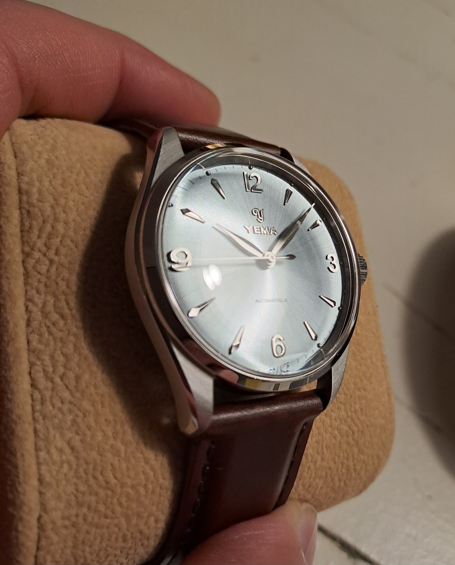 Ik merk dat ik mijn andere blauwe horloge (40mm) toch sneller uit de kist trek omdat deze qua formaat beter voelt. Kortom, de Yema verliest het vaak van mijn andere horloges. Jammer, maar het gaat zoals het gaat ![]()
