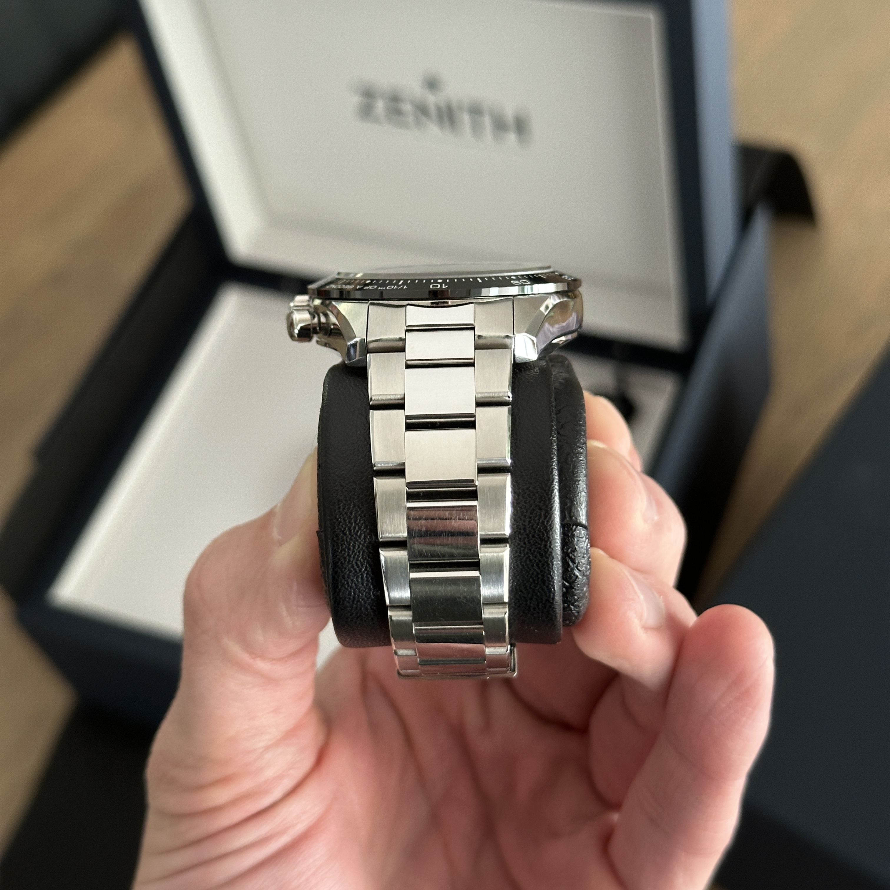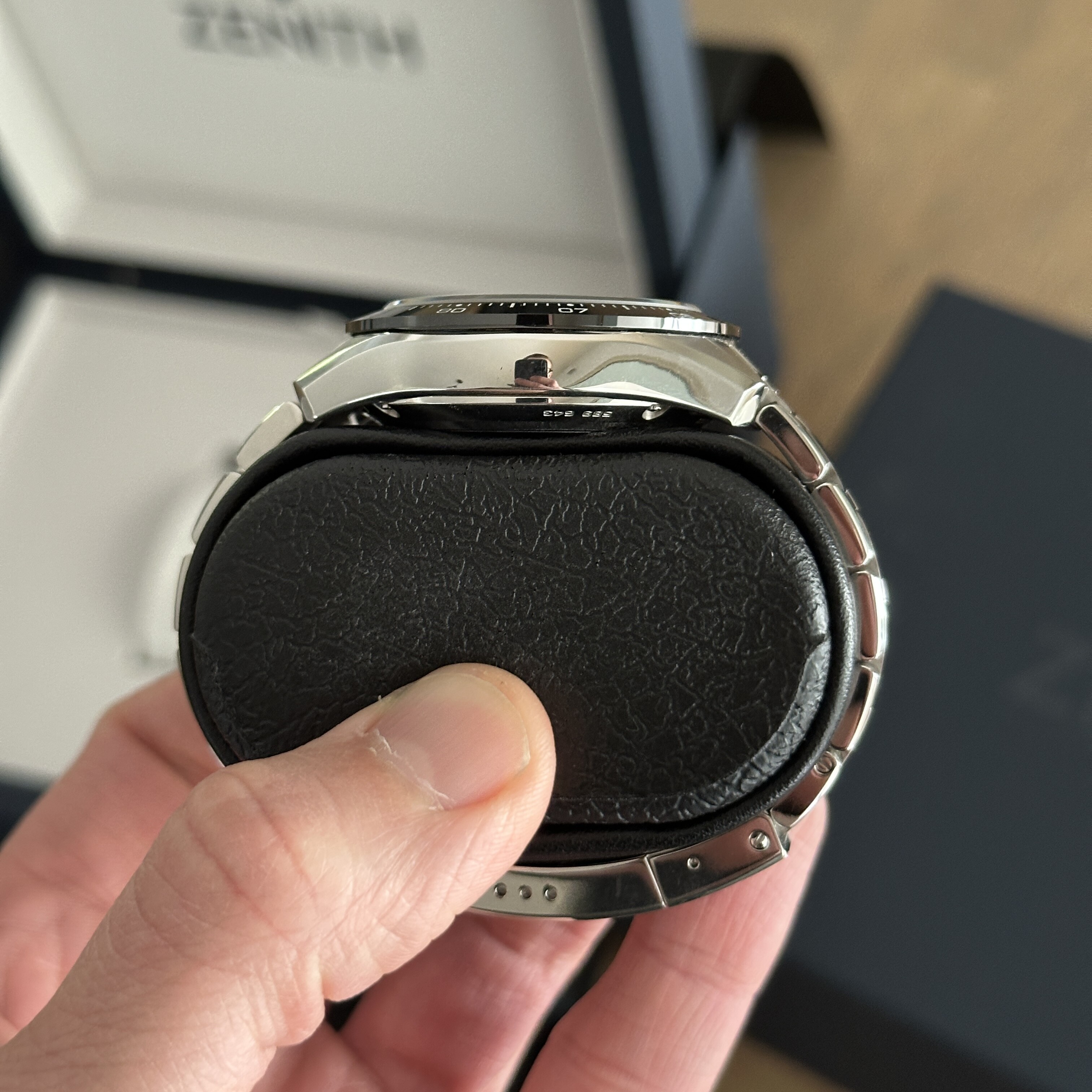 Conditie (krassen, werking etc): goed, haarlijntjes op de gepolijste delen, klein krasje op de sluiting.