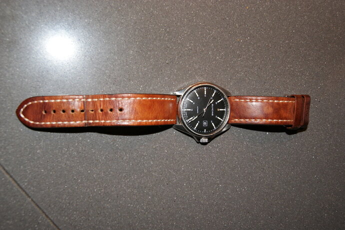 Ik had vroeger ook nog een horloge met zwarte band om te dragen bij zwarte schoenen. Maar ik merkte dat ik de Glycine toch het fijnste vond. Nu draag ik maar heel af en toe nog zwarte schonen, dus heel vaak gaat het niet mis. En het staal is meer voor de temperatuur dan dat het overall bij kan. Al zullen de puristen zeggen van niet.