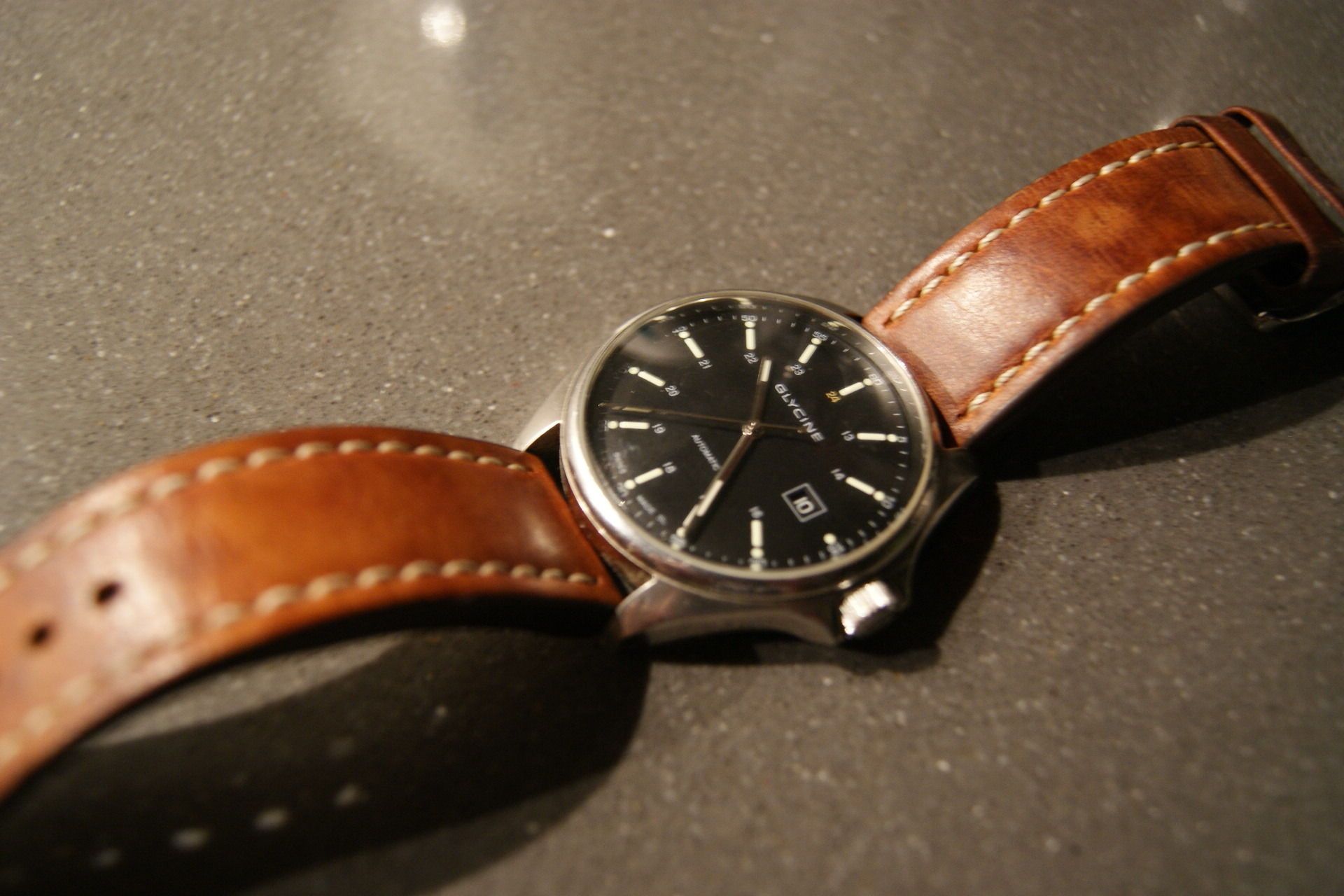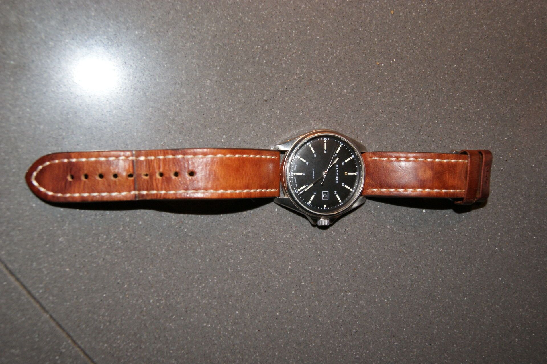 Ik heb ook een Glycine Combat op leer. Niet de 6 maar de Sub Automatic.