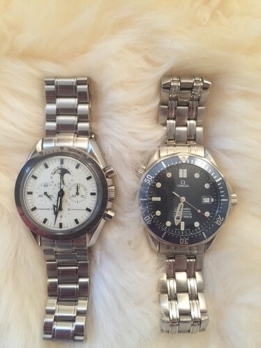 Ik vind het wel een goede combi zo. De Seamaster draag je vaak, en voor af en toe (gewoon om naar te kijken, bij een pak of een avondje uit eten met Madam) doe je de Speedy om. Krassen worden zo tot een minimum beperkt en je kunt nog eens afwisselen.