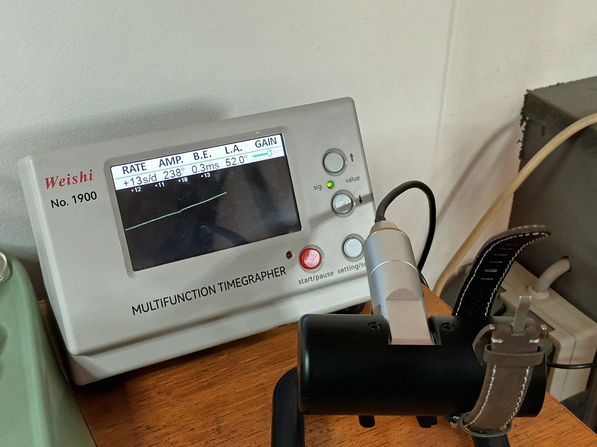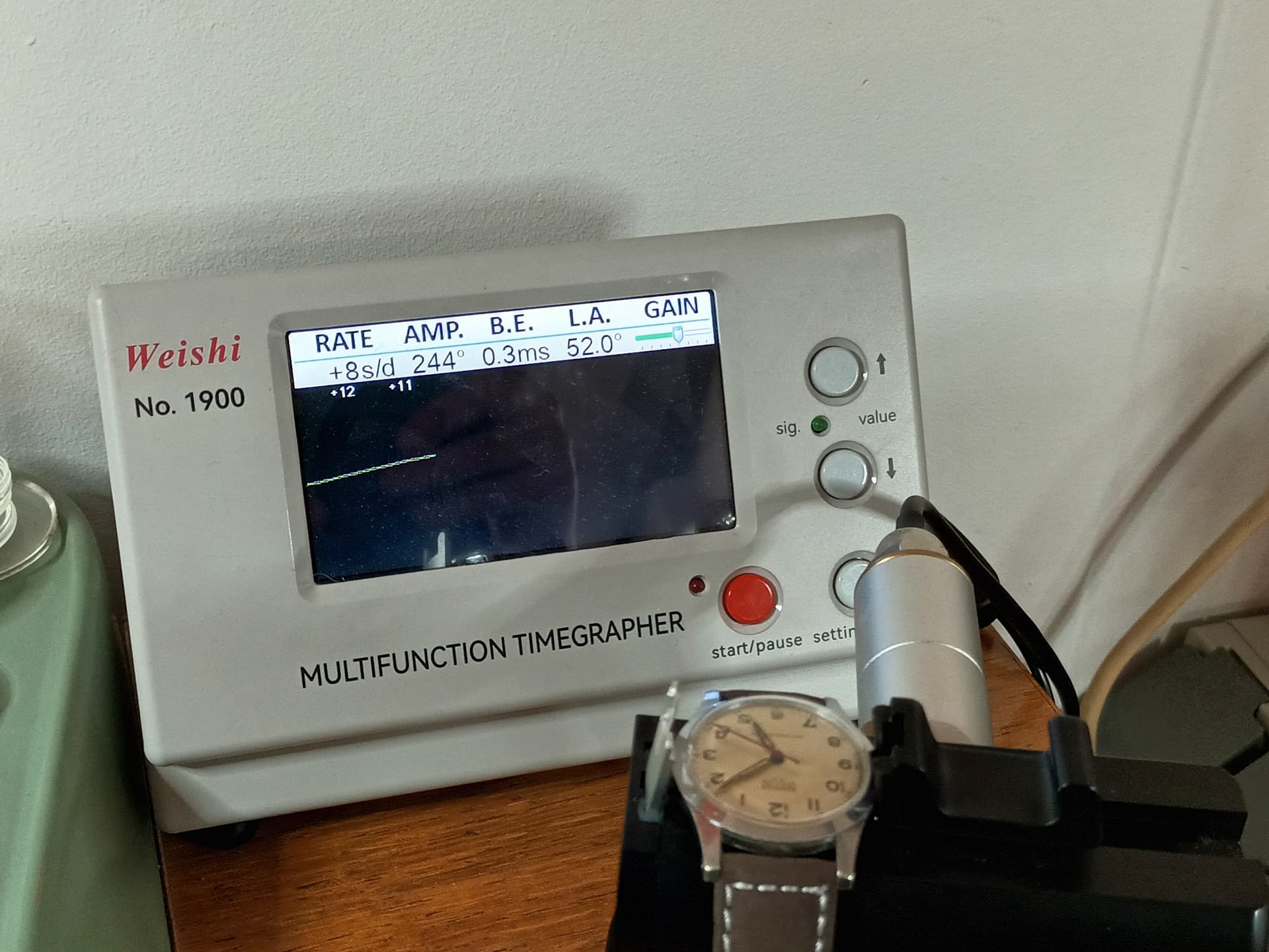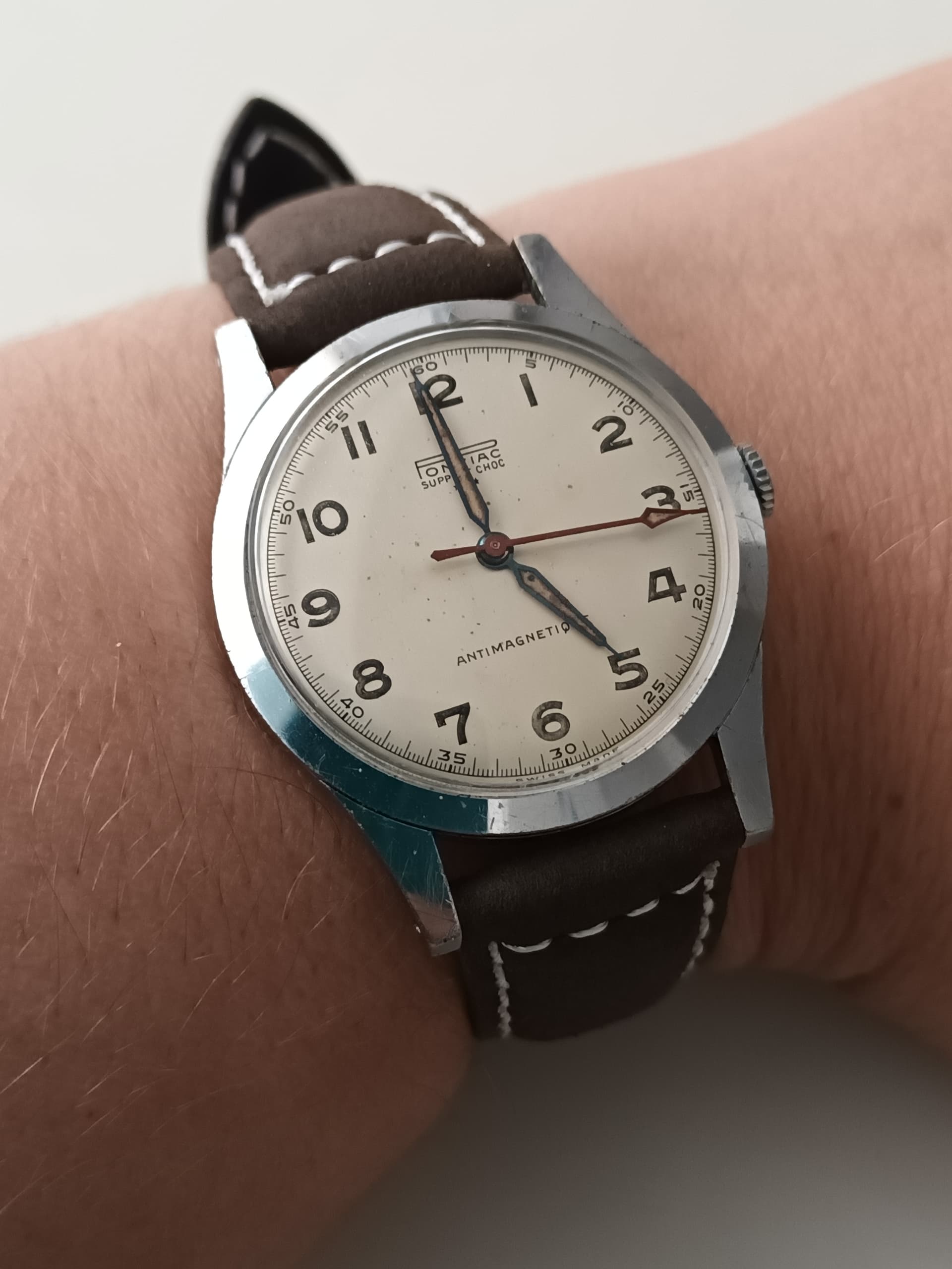 vrij goed als je weet dat ik hem afregel op halfopgewonden toestand. Heel opgewonden haalde ie meer Half opgewonden afregelen doe je in principe altijd bij een vintage handopwinder omdat dat de toestand is waarin de veer zich relatief gesproken de meeste tijd bevindt.