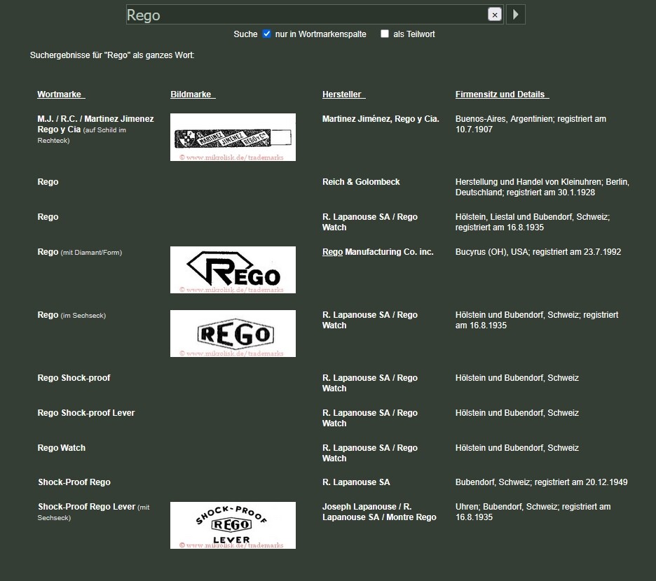 De fabrikant Rego / Lapanousse / Cimier maakte van 1923 tot 1986 (volgens de wijze Dr. Ranfft (RIP) eenvoudige penanker uurwerken en horloges.