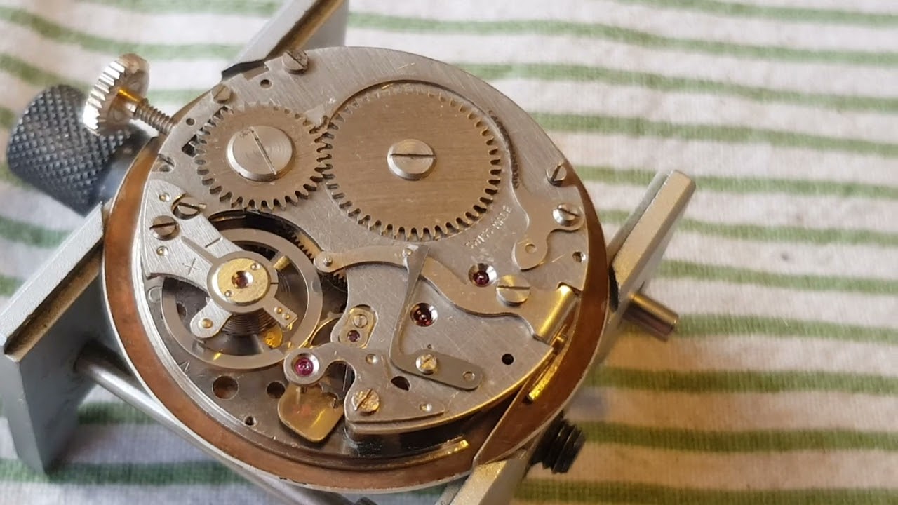 Het uurwerk is een NOS waarvan ik er een aantal jaren geleden 5 stuks kon kopen vanuit Zwitserland. Deze zijn zelfs uitgevoerd met robijntjes op alle asjes. Ik heb nooit meer andere gezien die dat hebben. Ze lopen dan ook beter dan de meeste anderen met dit soort uurwerk.