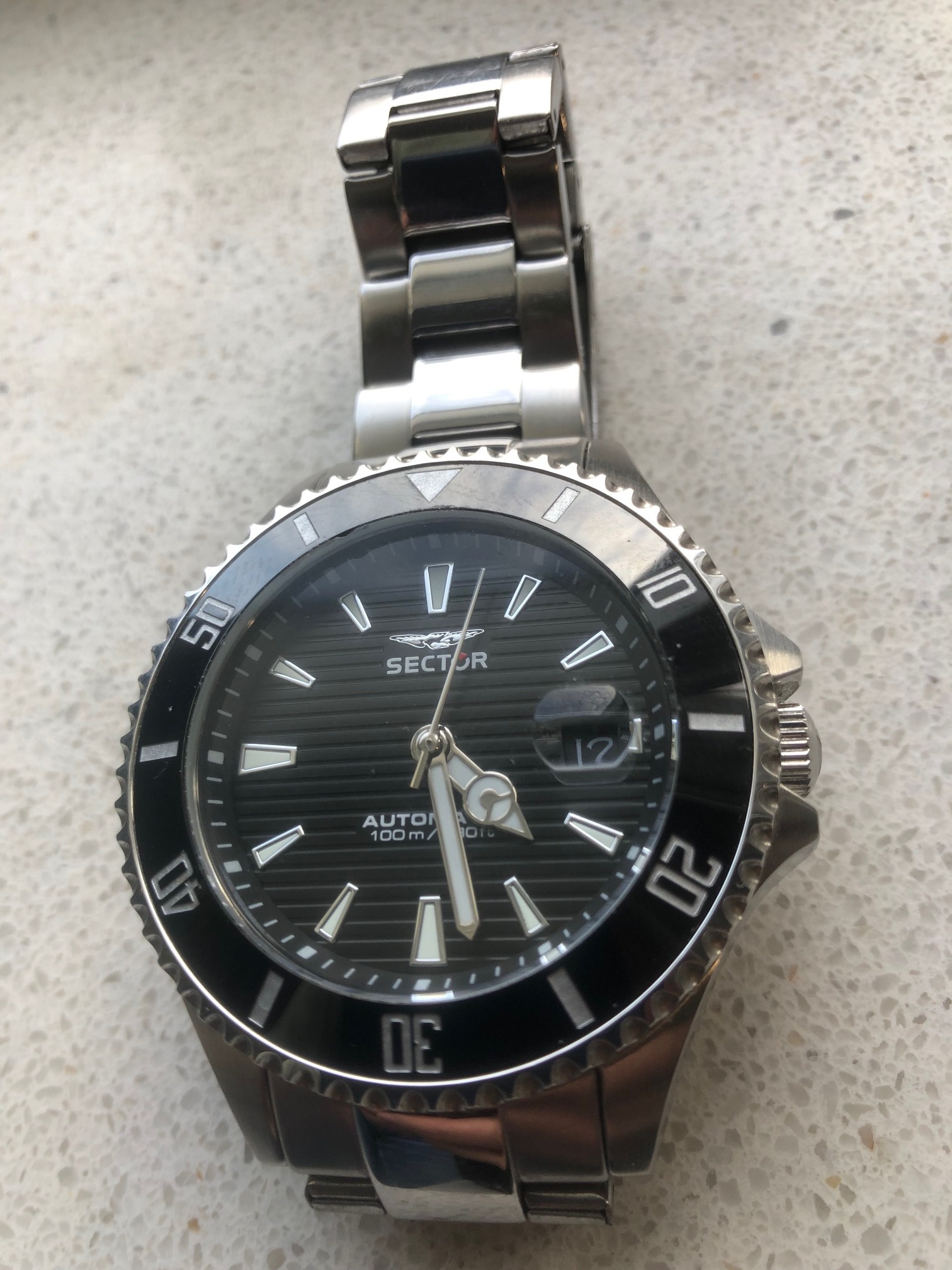 Middels aankoop van 1 van mijn eerste horloges ben ik aantal jaar terug in aanraking gekomen met het merk Sector uit Italie. Zelf ben ik in het bezit van de Diver 230, ø43 mm automaat met zwarte plaat & bezel, datum met loep op 3 uur, 21 jewels ETA uurwerk etc. (Zie foto’s onder). Kijk je naar prijs / kwaliteit ben ik zeer tevreden met dit horloge. Lugs en band erg mooi afgewerkt en top uitstraling Draagt ook erg fijn. Opladen van uurwerk is ook een feest gezien de rotor spint als een opstijgende heli ![]()