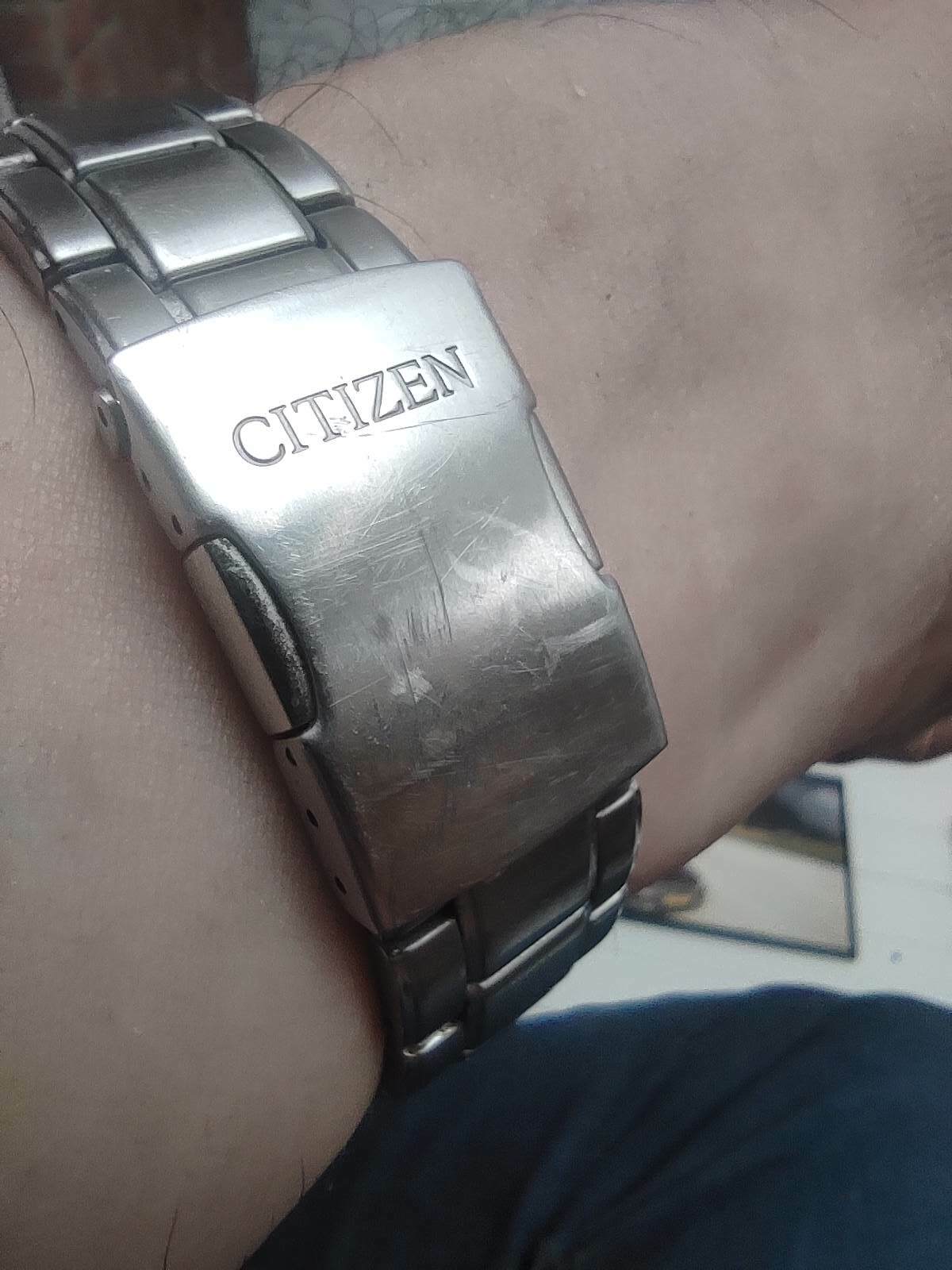 Citizen doet het aardig goed met de Duratect titanium afwerking, resultaat na 2,5 jaar regelmatig dragen en dit is het enige dat ik kon vinden: