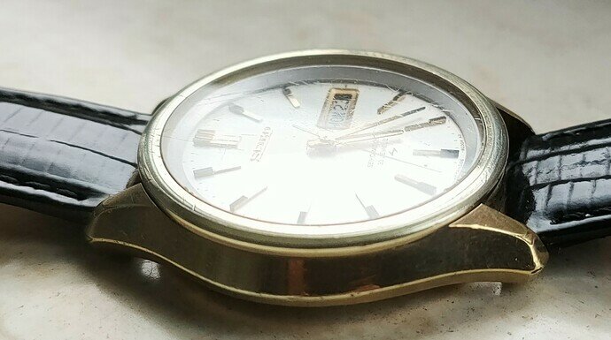 4: de wijzers stonden heel slecht uitgelijnd daardoor heb ik alles opnieuw gemonteerd, dit was echt een k*t klusje. De wijzers moeten exact op een seconde markering worden uitgelijnd. De wijzerplaat heeft lichte patina rondom de uurmarkers maar is over het algemeen in nette staat. Vervolgens alles gecontroleerd op werking en de batterij vervangen. Tijdens het afmonteren alle pakkingen gecheckt en een aantal vervangen.