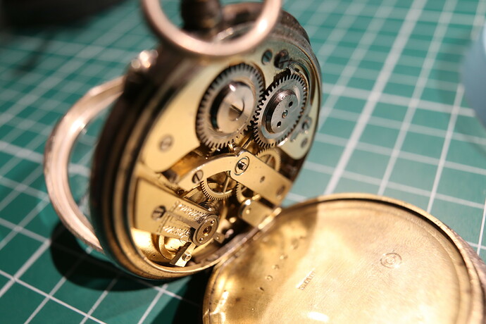 Ik heb me weer een poosje bezig gehouden met iets wat m’n schoonvader hier neergegooid had, een oud cilindergang zakhorloge. Compleet vastgelopen in dikke oude olie