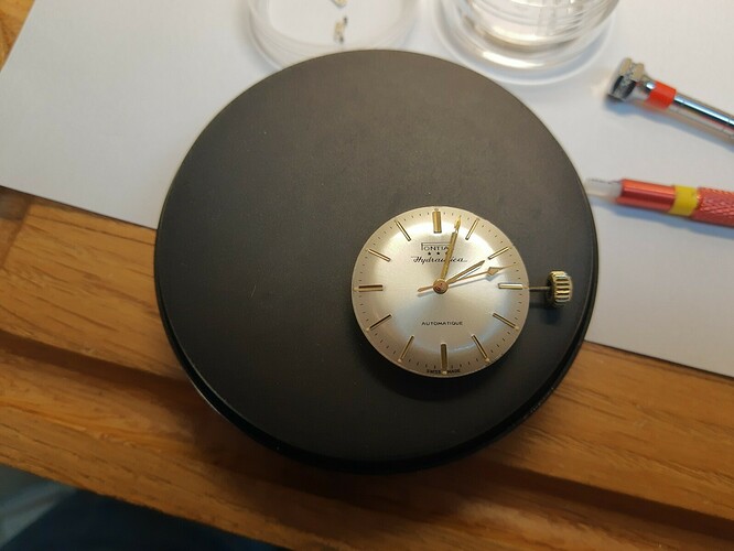 de module van de automaat was wat speciaal (gelukkig genoeg foto’s genomen bij het demonteren). Die module zit tussen het raderwerk ipv bovenop zoals de meeste ETA’s en FE automaten. Daardoor is het binnenwerk wat minder hoog.