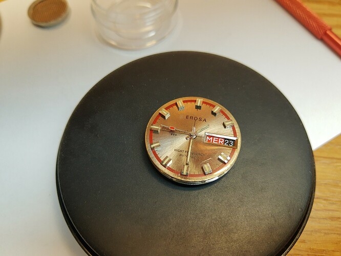 Moeilijk op foto vast te leggen, maar een gilt dial is toch echt wel iets moois