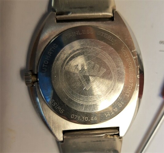 Dit horloge heeft hoogstwaarschijnlijk een stevige val gemaakt zodat de wijzers er af lagen. Maar de incabloc heeft keurig zijn werk gedaan, want het binnenwerk liep nog