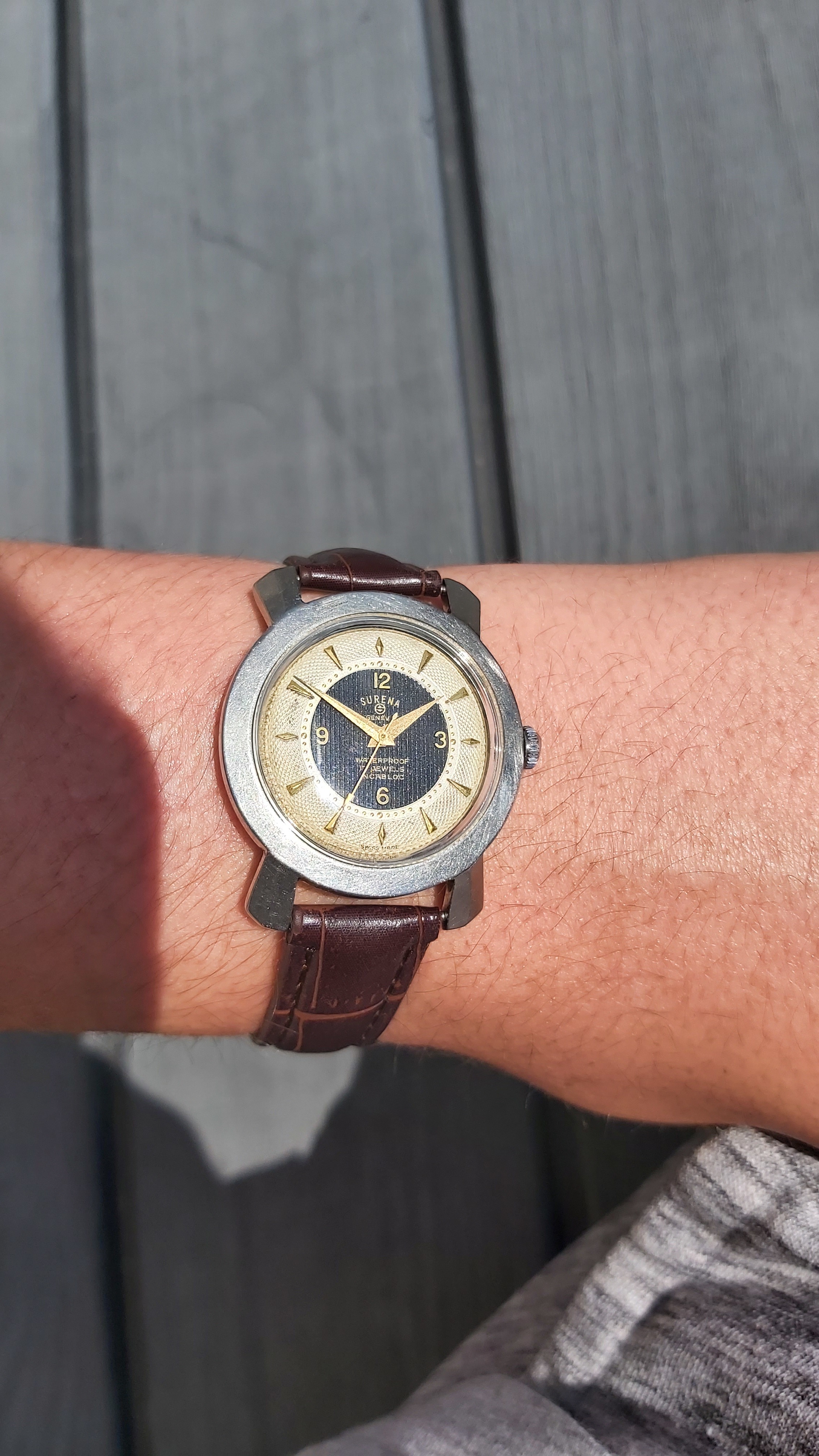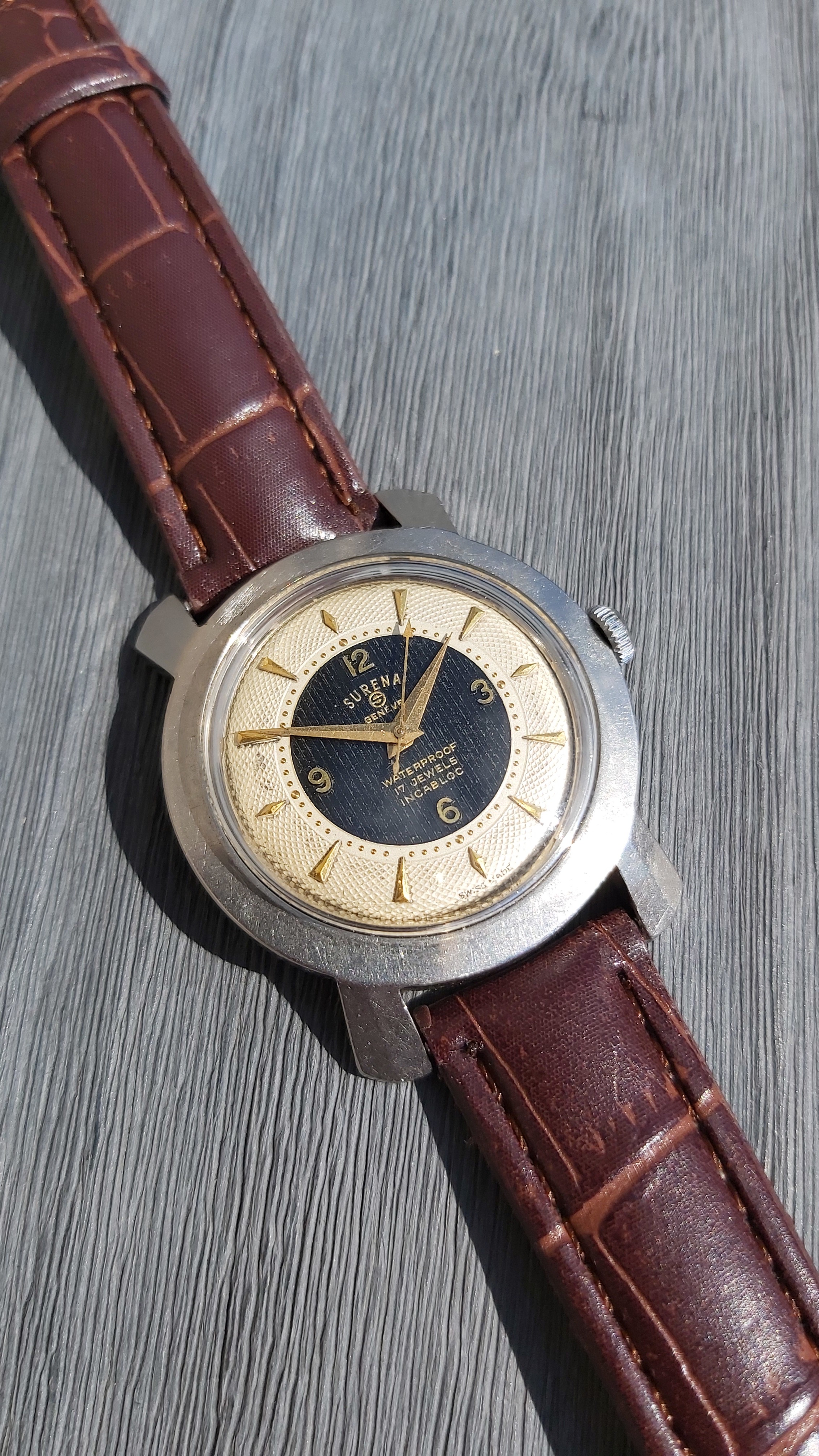 Die geribbelde sunburst dial (of hoe je die stijl ook moet noemen) deden ze wel vaker in de jaren 50.
