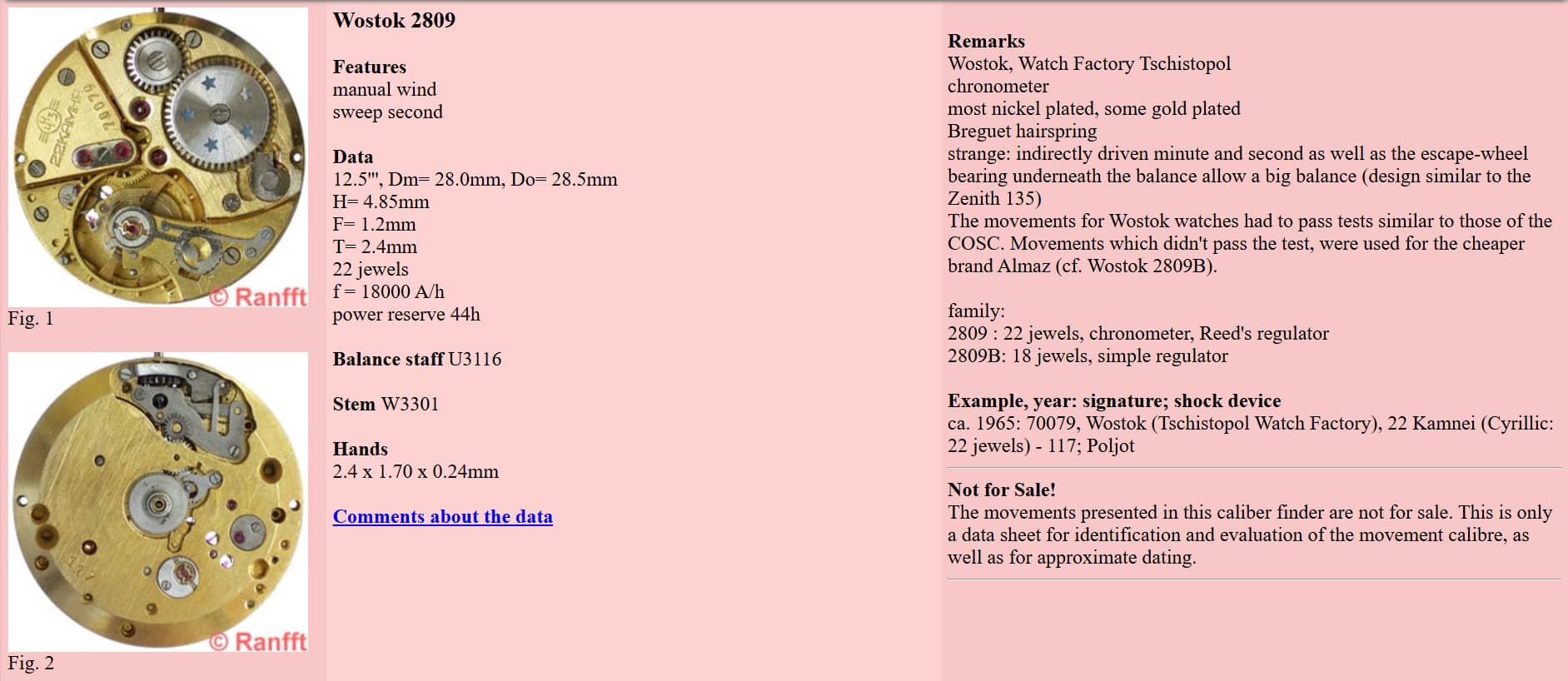 Het is inderdaad een Wostok 2809. Hieronder de RANFFT gegevens, (als je die nog niet had).