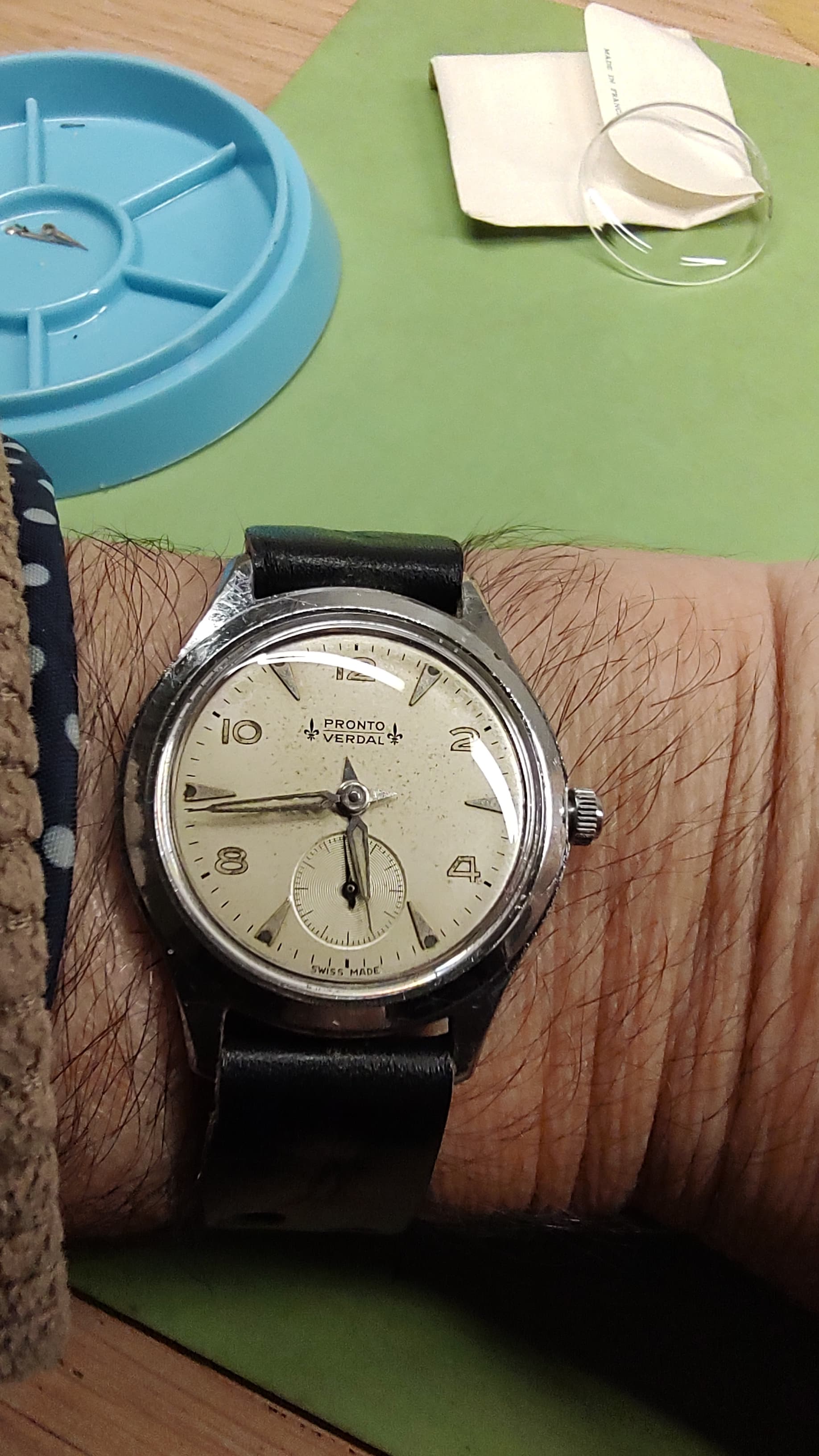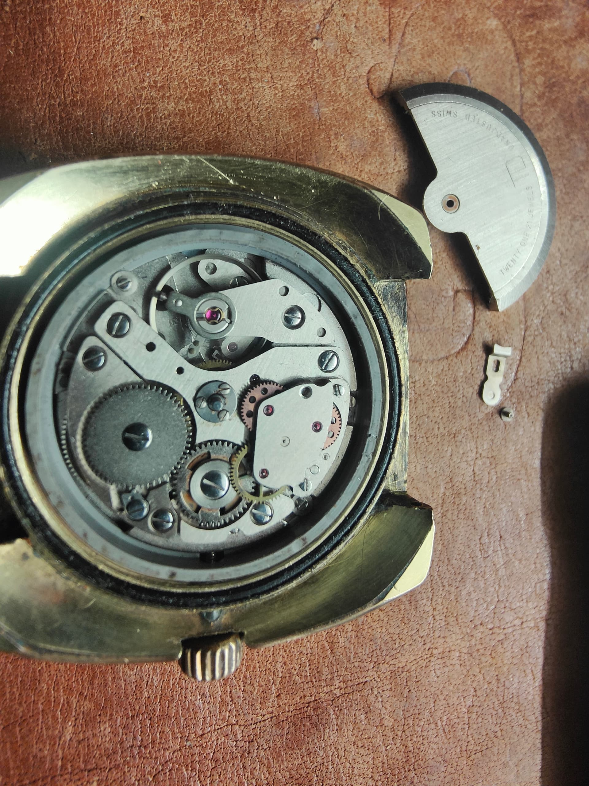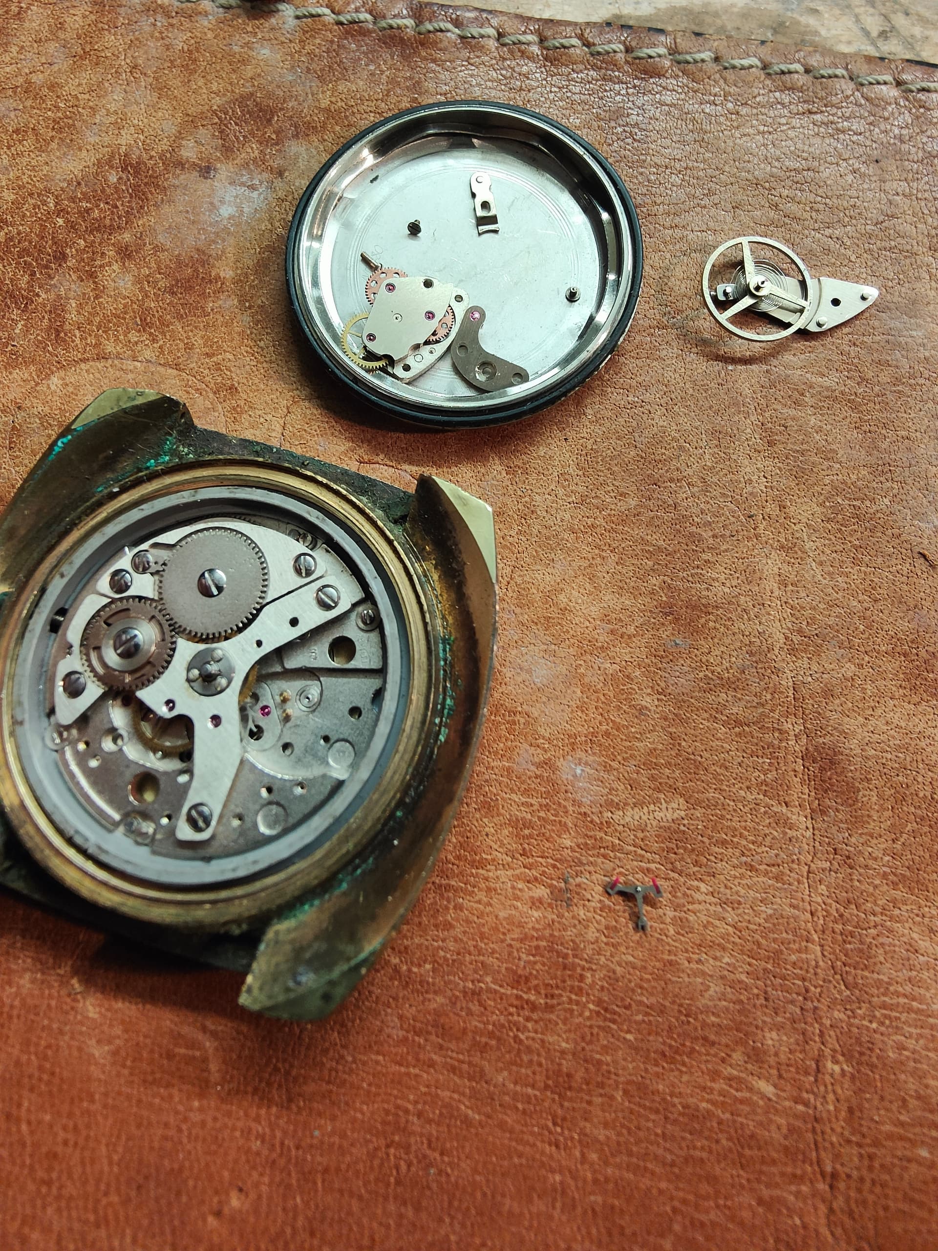 Was in slechte staat. Heeft een Raketa 2609HA in zich. Balansveer lag redelijk in de kreukels, dagen bezig geweest deze weer zo te plooien dat ze weer vrolijk rondtolt boven de 235gr.