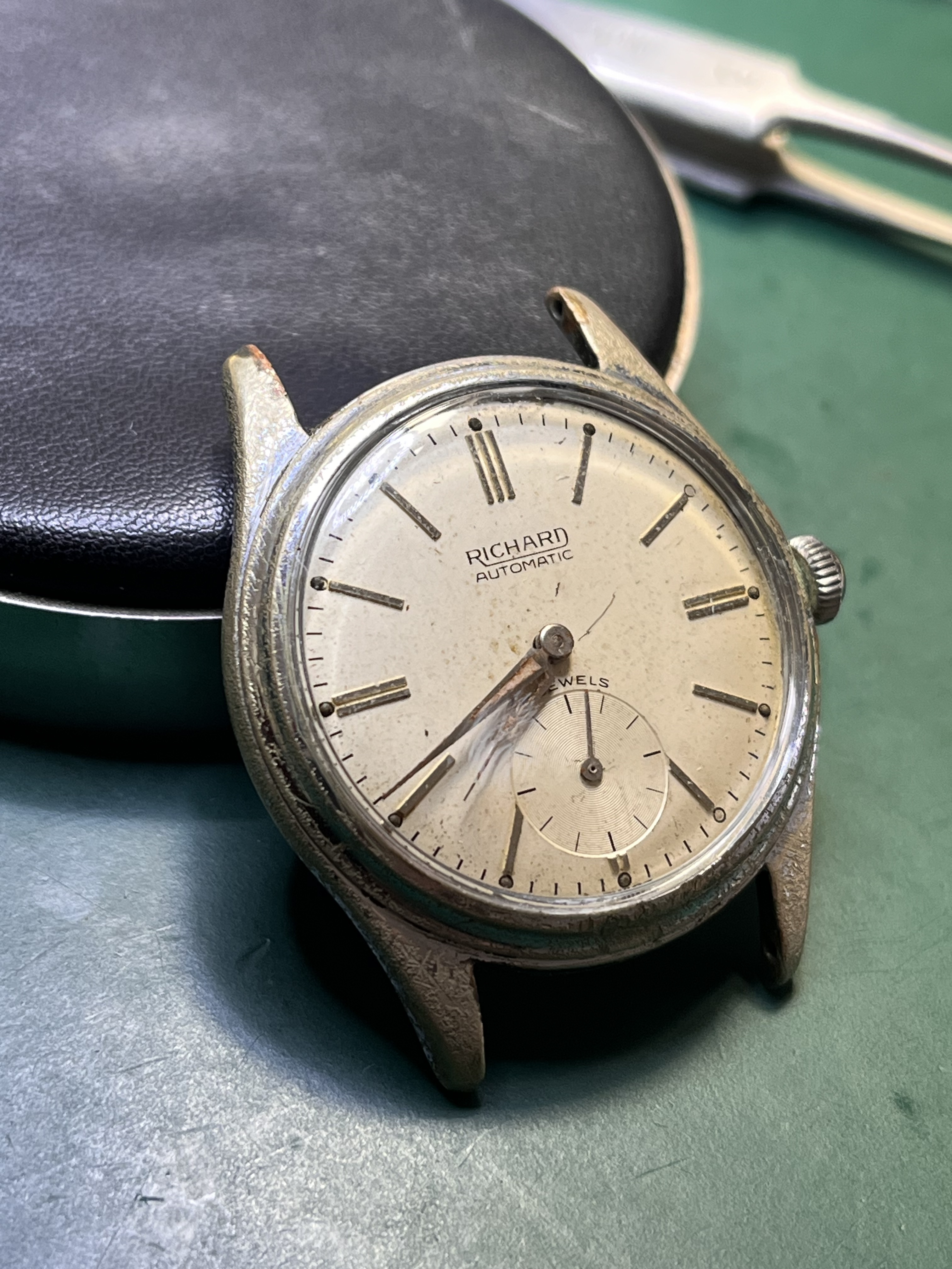 Geen foto’s gemaakt van de herstelling, maar wel van het eindresultaat. Ik heb inmiddels al heel wat Seiko cal. 603 gedaan, dus voor mij is dat wat minder interessant nog om foto’s van te maken…