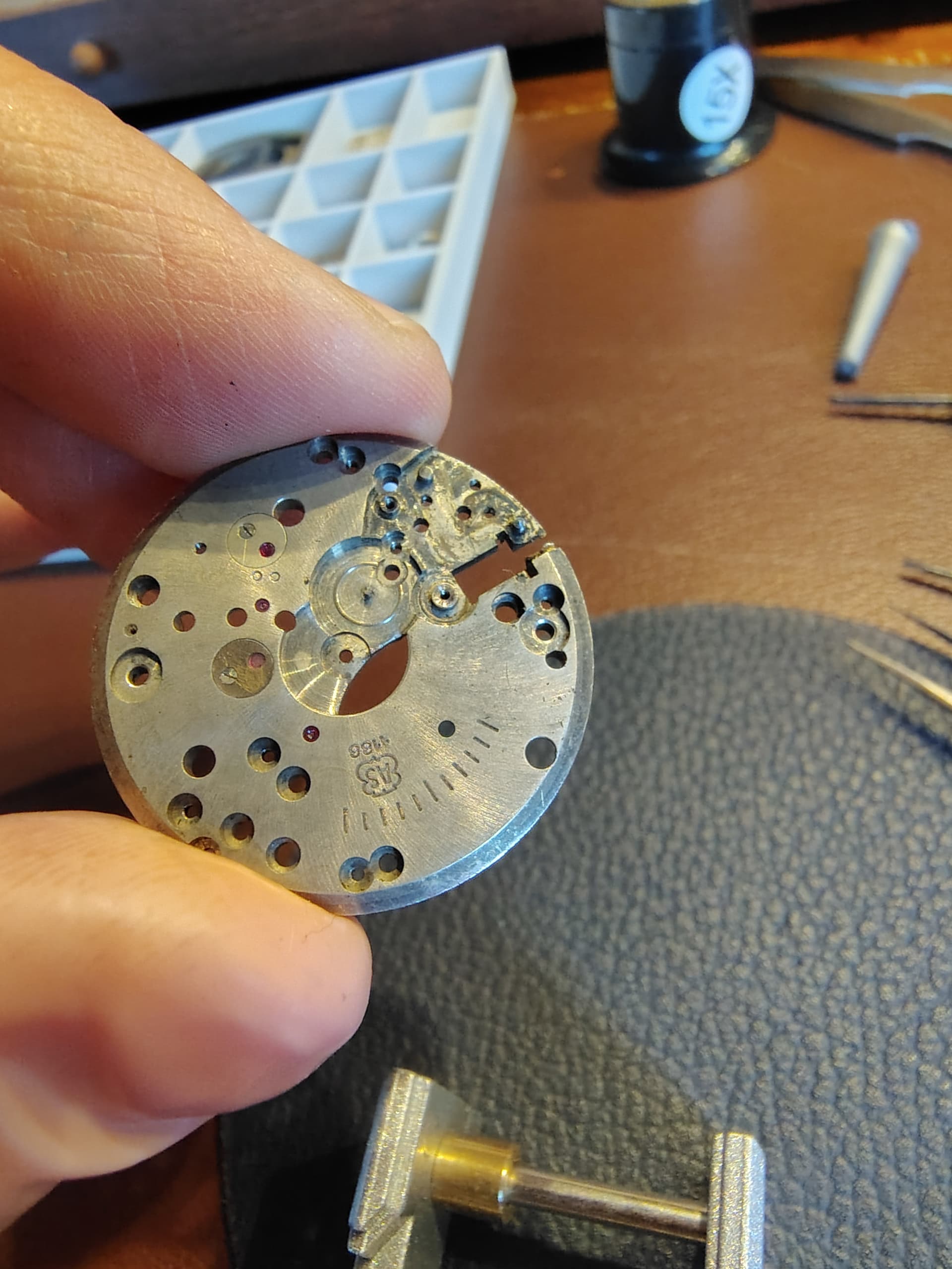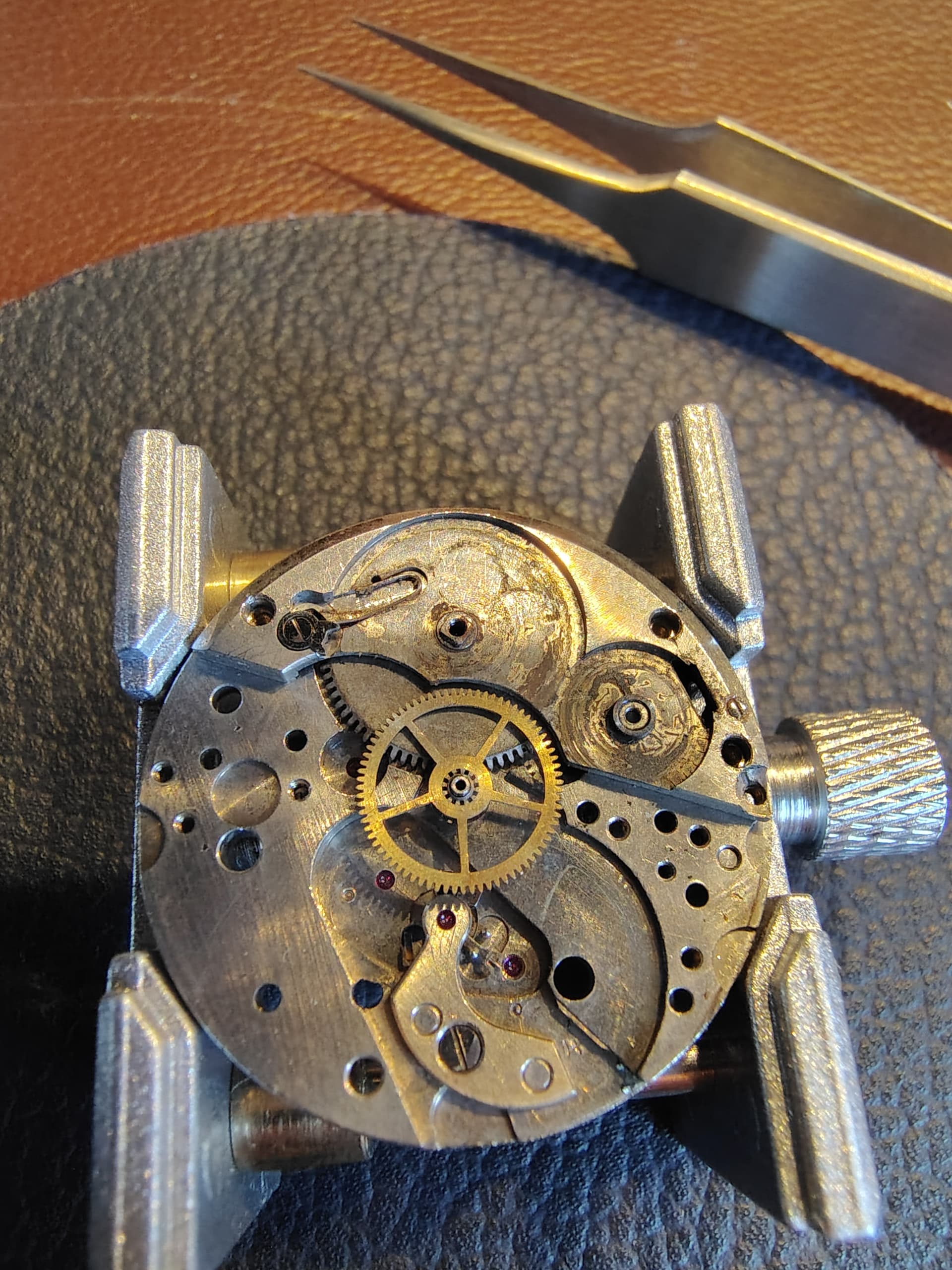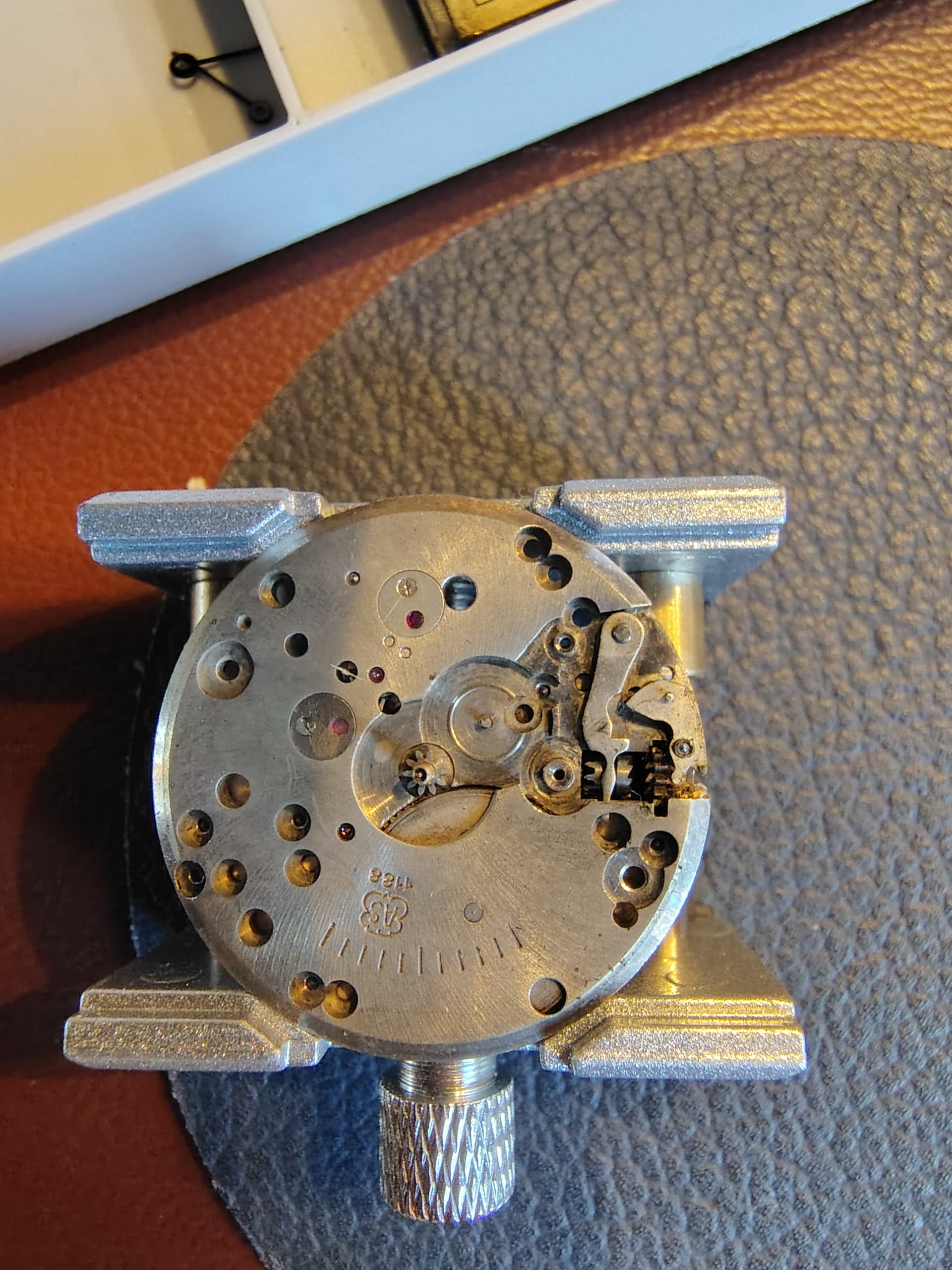 Het uurwerk was behoorlijk vervuild, maar kwam op het eerste gezicht geen vreemde zaken tegen. Dus alles uit elkaar en door de schoonmaak gehaald. Daarna weer opbouwen en toen liep ik tegen wat kleinere problemen aan.