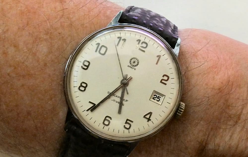 Het kroontje kan niet dichter tegen de kast aan want hij zit al helemaal tegen de kraag van de opwindstift aan geschroefd. Dragen kan helaas ook nog niet. Vaste lugs en een 13mm band heb ik sowieso niet op voorraad … 16 word al lastig