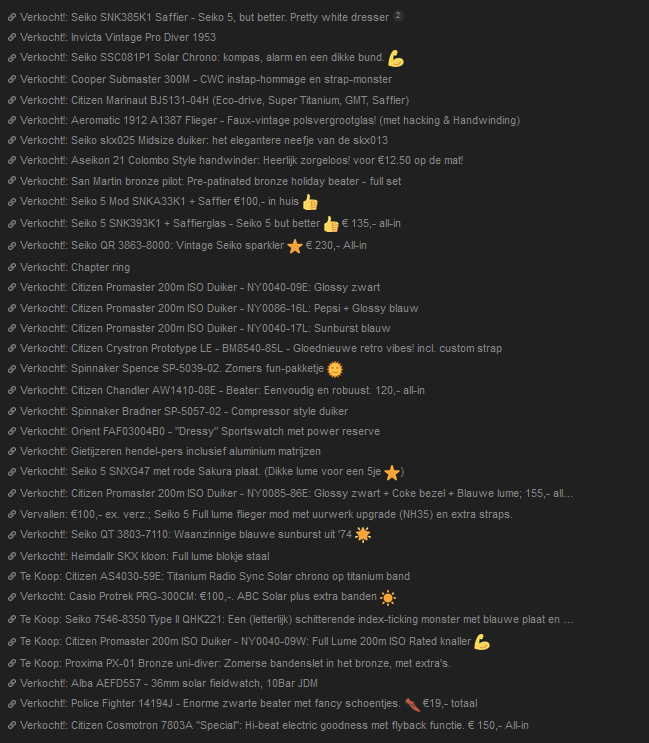 Ik koop nu ook wel vooral nieuwe horloges, maar ook daar ga ik niet over een nacht ijs. Het inlezen, reviews bekijken, geschiedenis achter bepaalde modellen leren kennen, ed is eigenlijk het leukste aan de hobby.