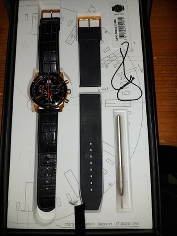 Conditie (krassen, werking etc): De eerste jaren gedragen, daarom is de kroon wat verweerd, verder ziet het horloge er als nieuw uit. Er lijkt een pitje op een lug aan de achterkant te zitten maar die zie ik in het echt niet, dus lijkt mij meer een weerkaatsing van het licht. Wil niet zeggen dat er geen minuscule krasjes op de lugs aanwezig zijn maar is niet zo 1-2-3 te zien. Het horloge heeft verder saffierglas en heeft een nieuwe batterij gekregen in 05-2022, maar is niet getest op waterdichtheid. De batterij gaat nog wel even mee maar ik laat voor de zekerheid wel een nieuwe batterij plaatsen.