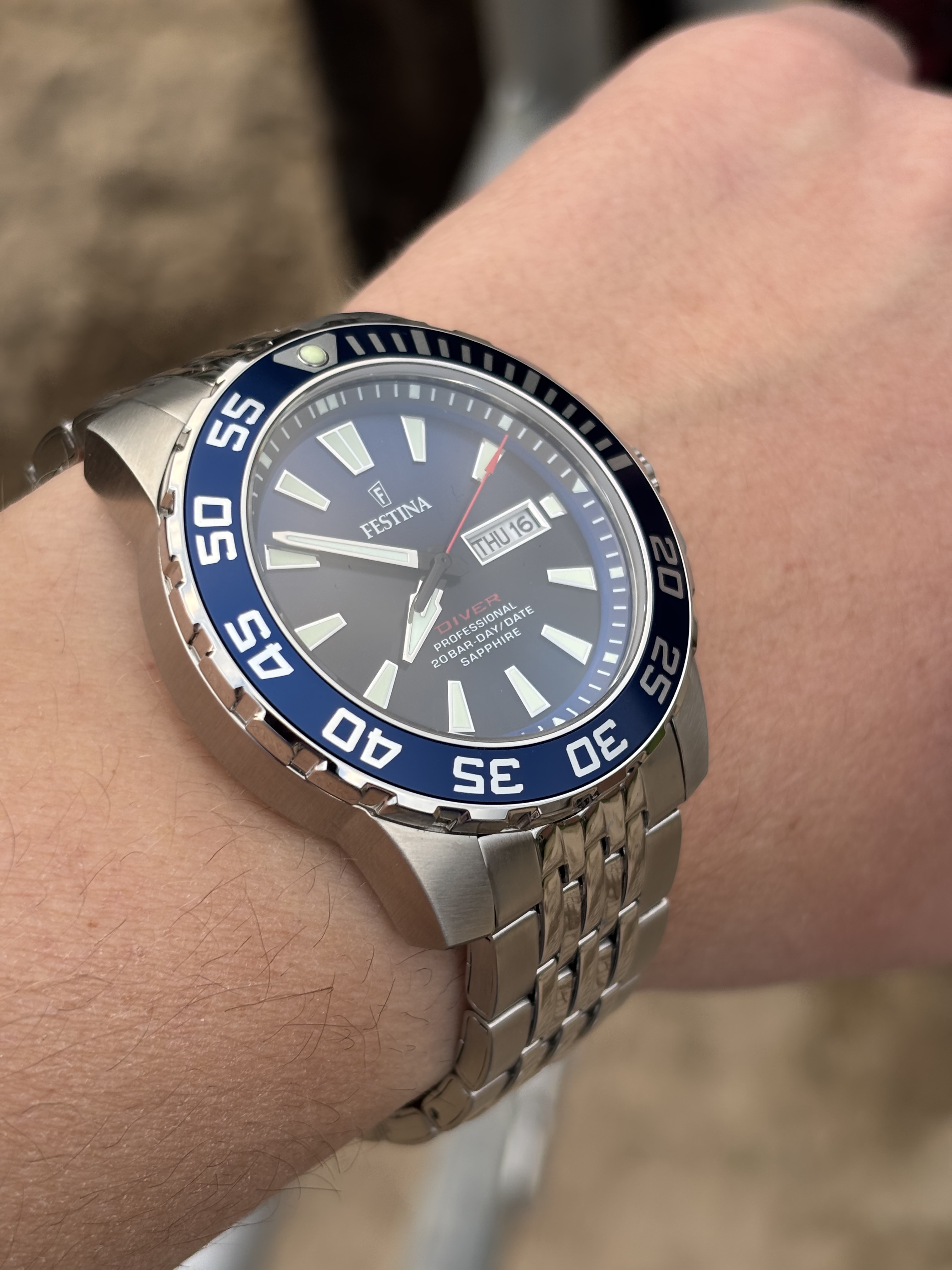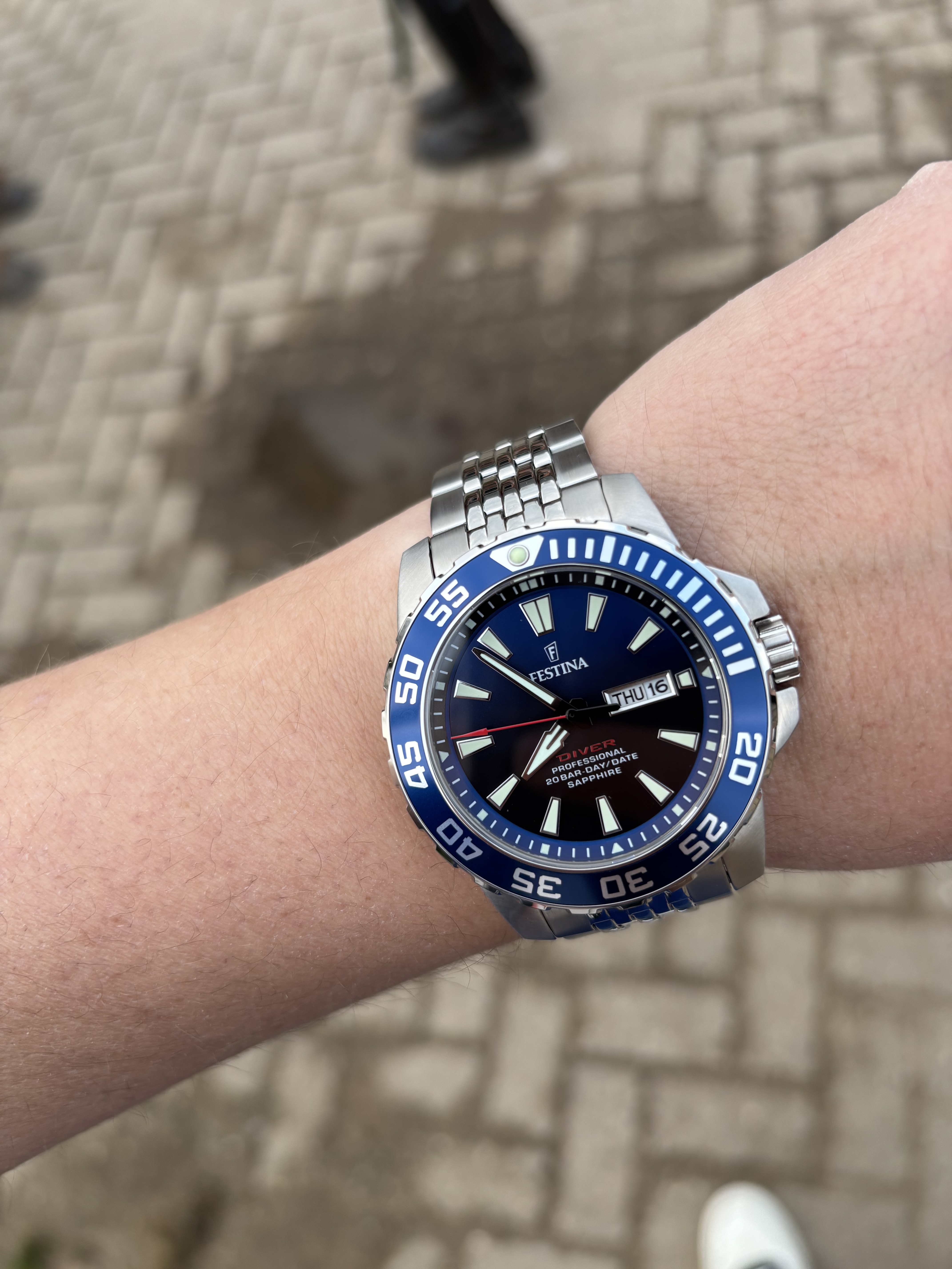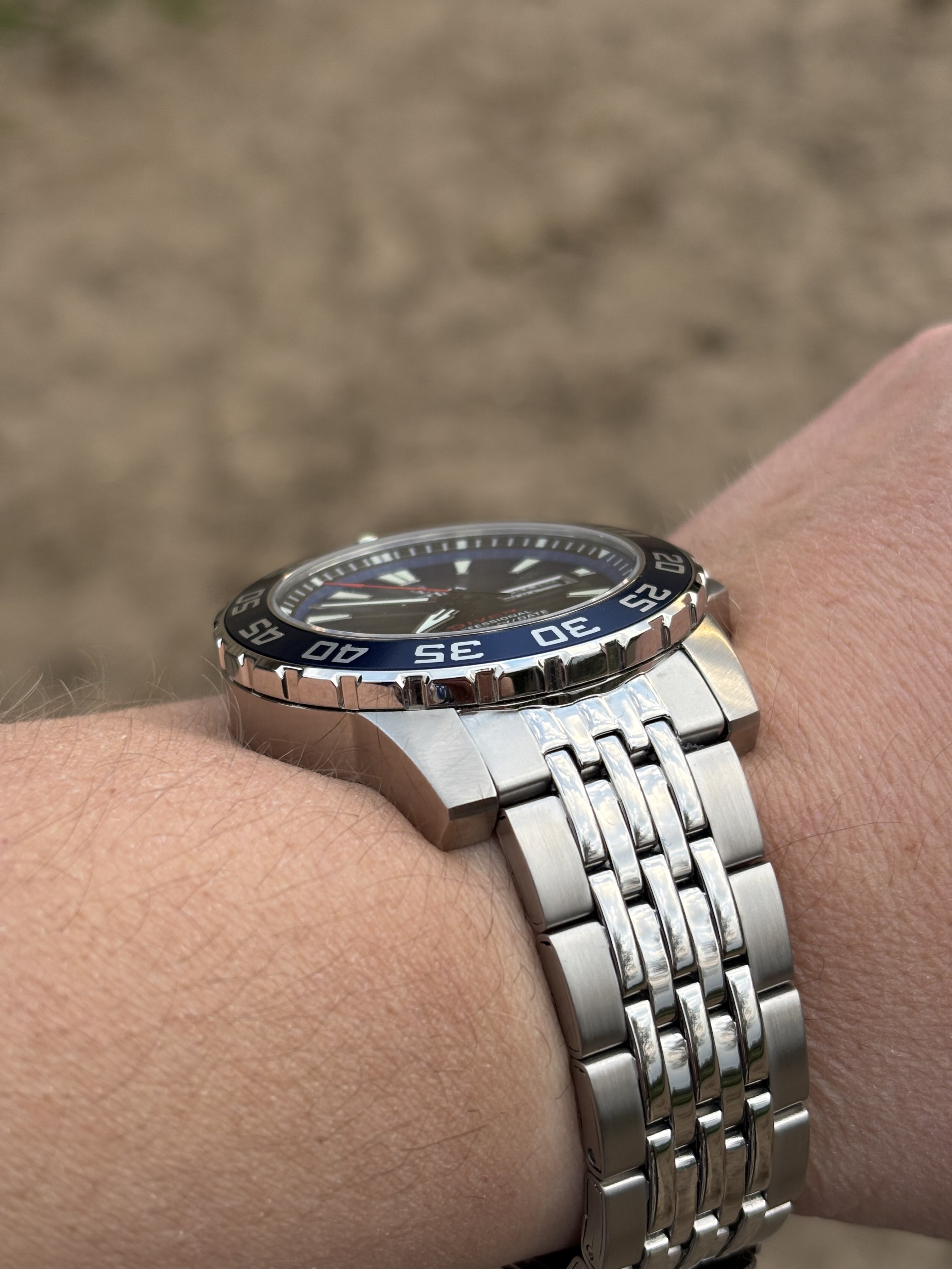 Onlangs gekregen, paar keer om de pols gehad maar is mij toch echt veels te groot.