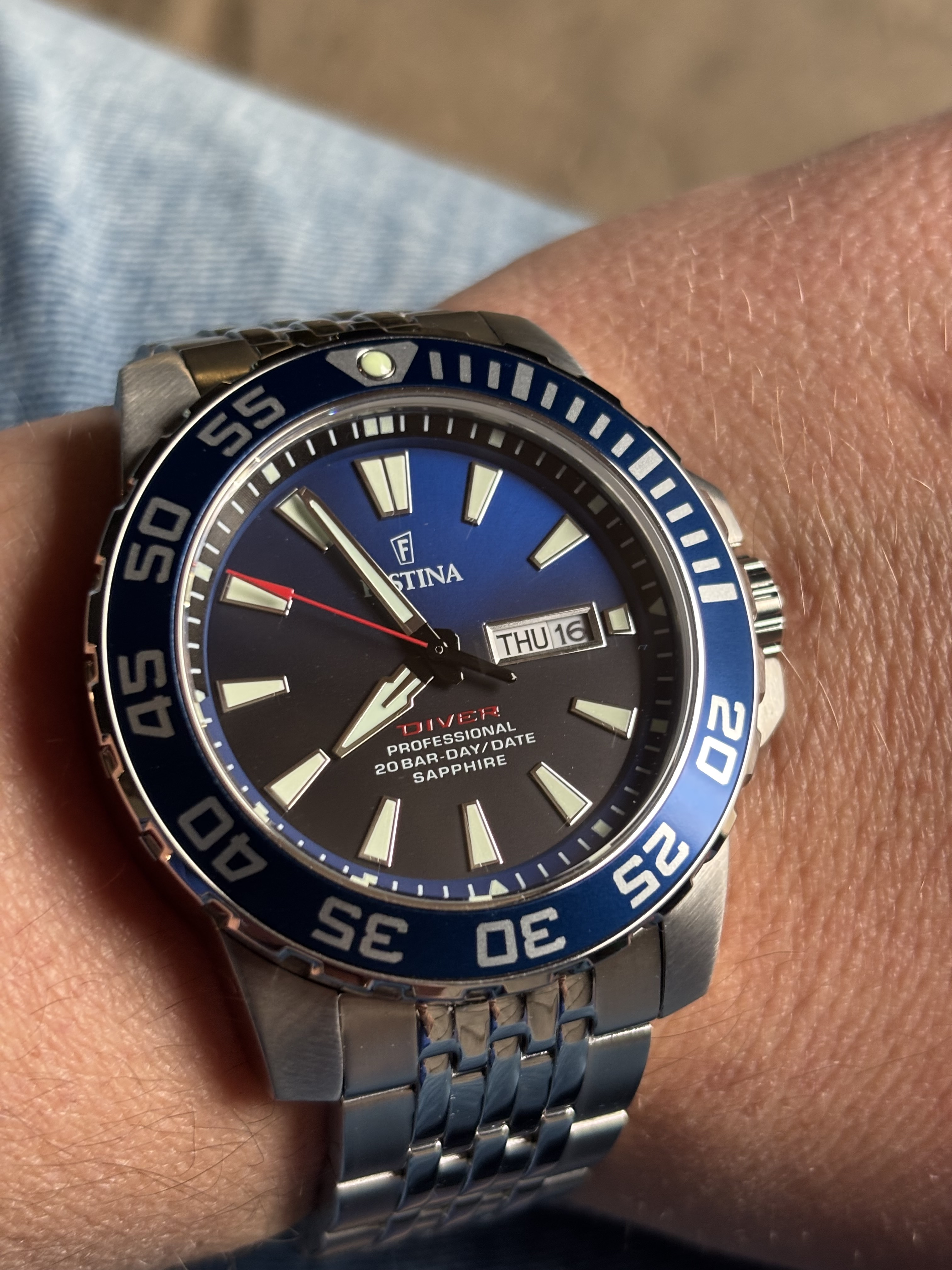 Supermooie blauw/ zwarte sunburst dial!