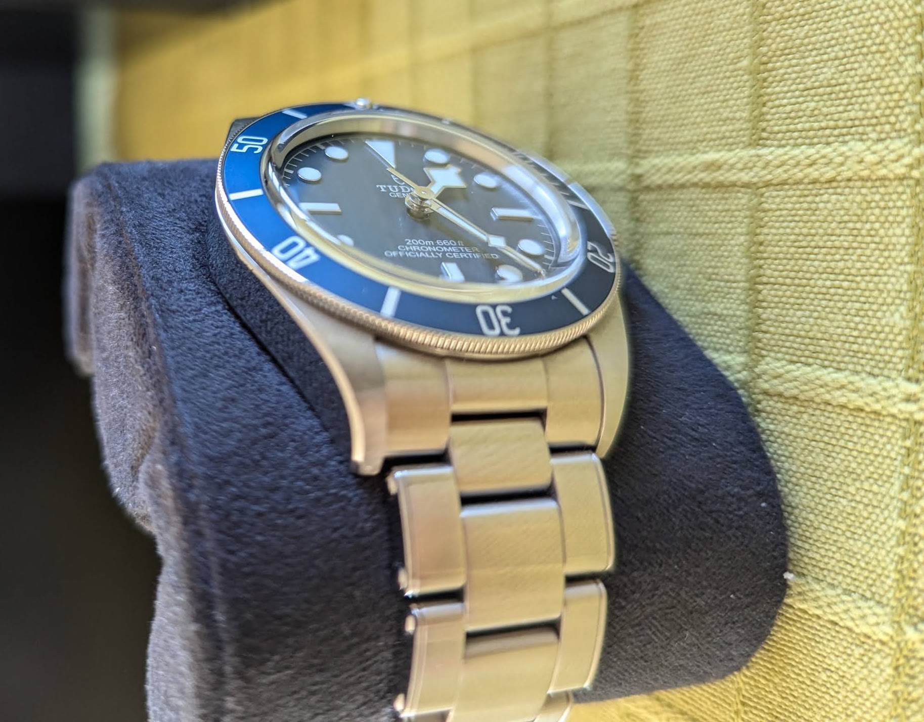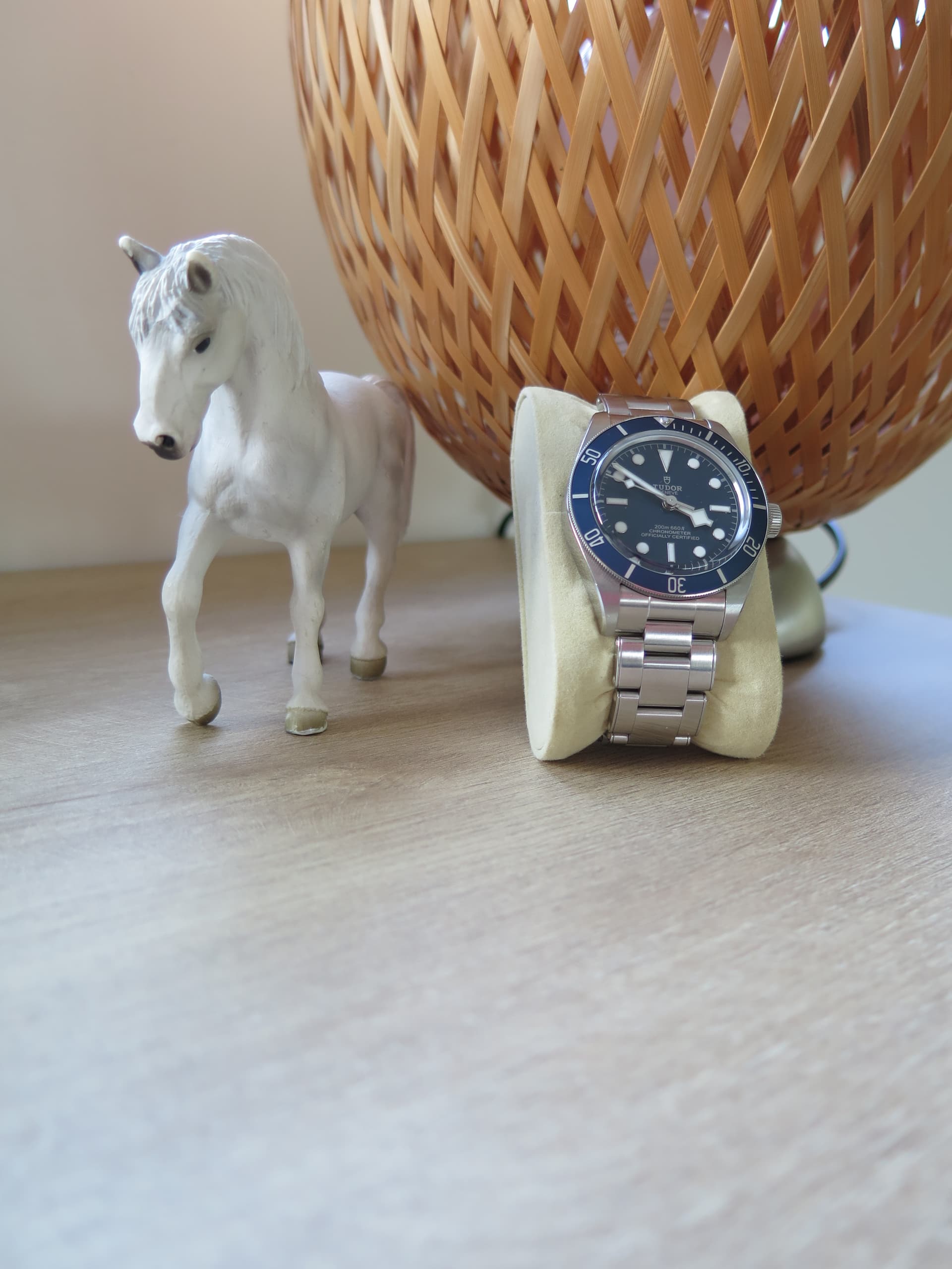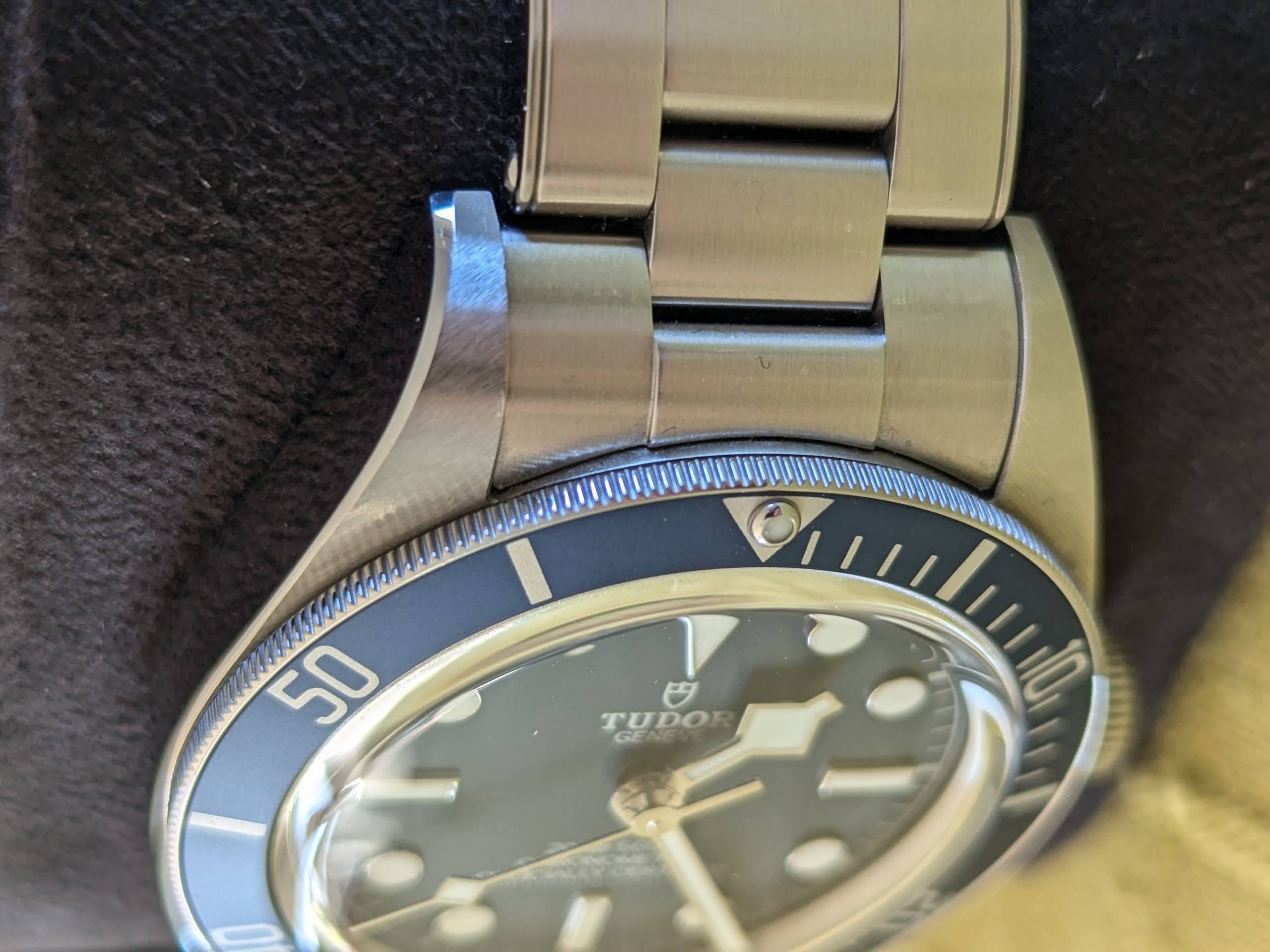Deze is weinig gedragen op kantoor/vakantie. Daar komen de nodige deskdive krassen op de gesp bij. Geen gekke dingen mee gedaan zoals verven, sporten, boksen of zwaar belastende bewegingen. Om het uurwerk beter te laten passen heb ik er een halve link bij gekocht (unclestraps). Voor de rest komt het uurwerk met alle toeters en bellen zoals doos, garantiekaart (5 jaar fabrieksgarantie), alle resterende links, boekjes en zelfs het Tudor kartonnen zakje als je dat wil.