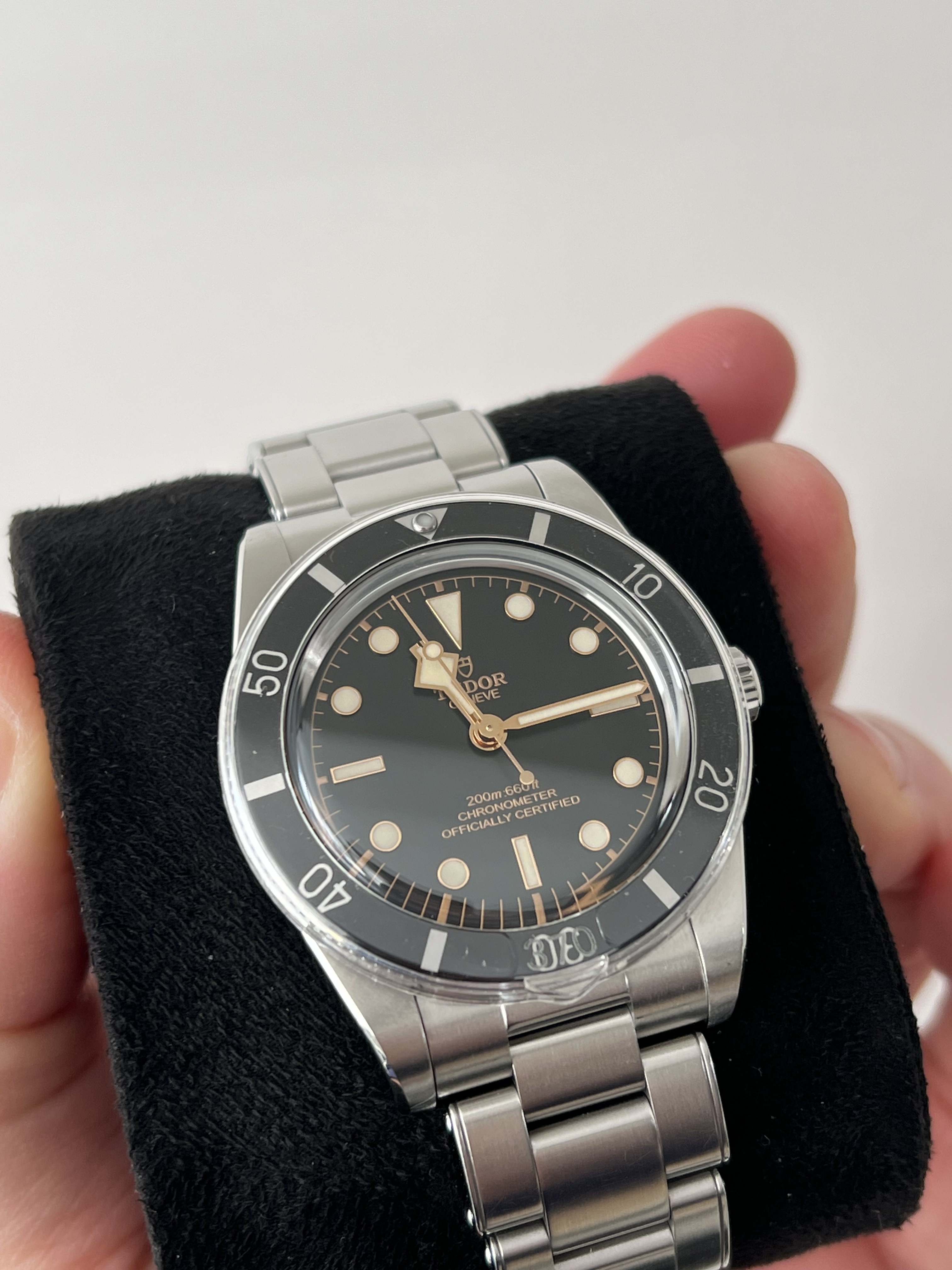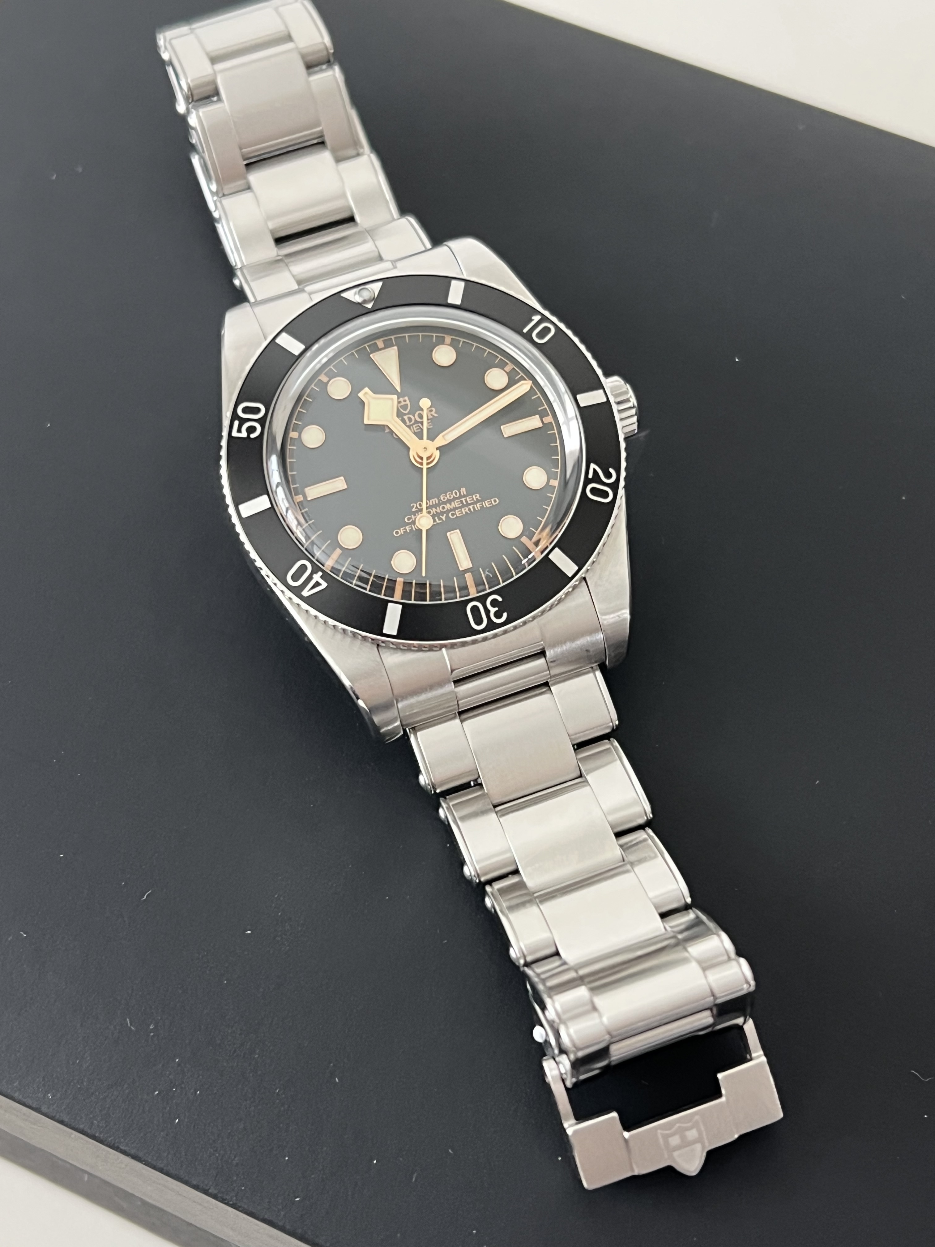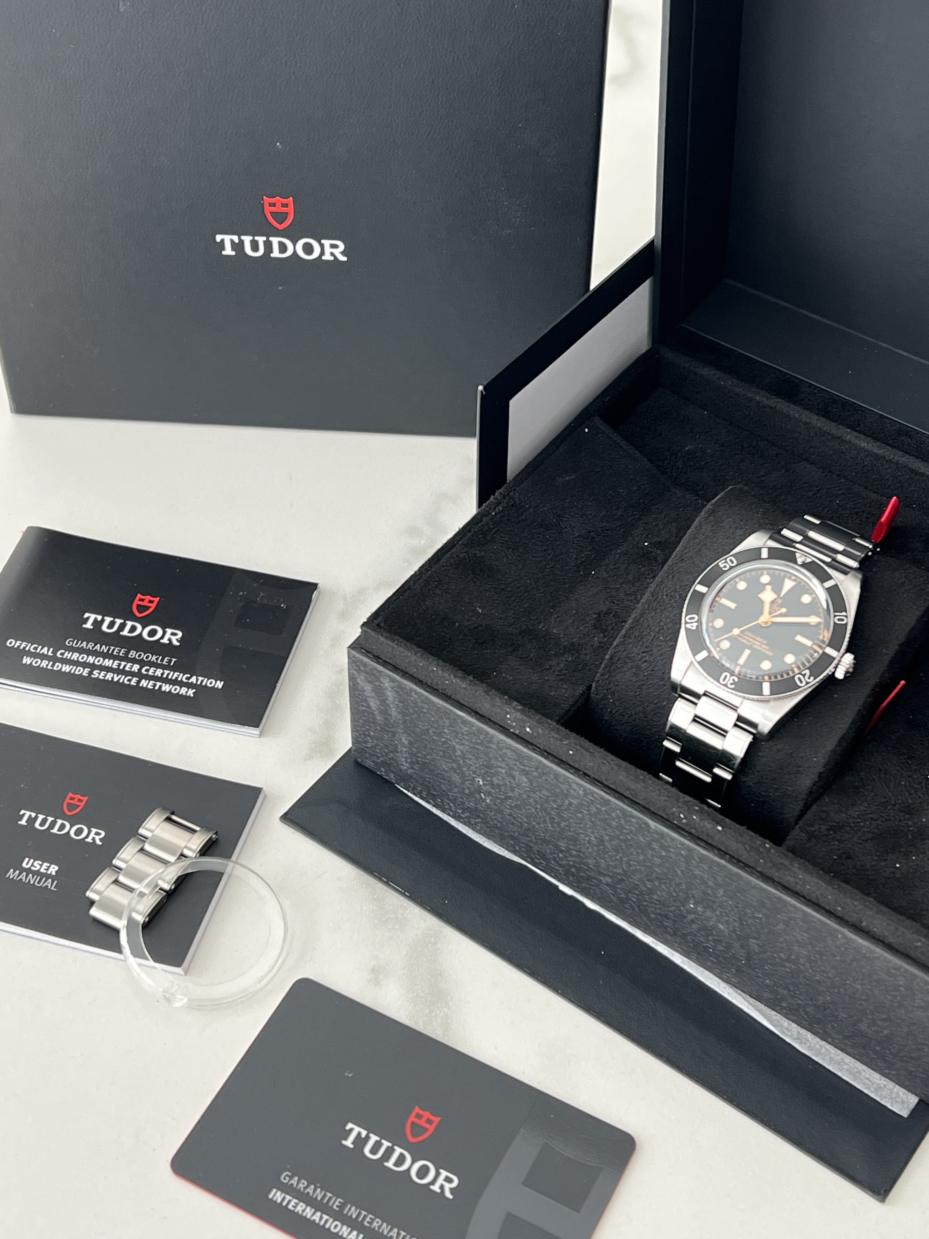Te koop: mijn Tudor Black Bay 54 (ref. 79000N), de perfecte combinatie van vintage uitstraling en moderne Tudor-kwaliteit. De staat is zo goed als nieuw, met slechts een kleine swirl op de clasp en eentje op de band. Geen krassen of gebruikssporen op de kast of bezel; de algehele conditie is uitstekend.