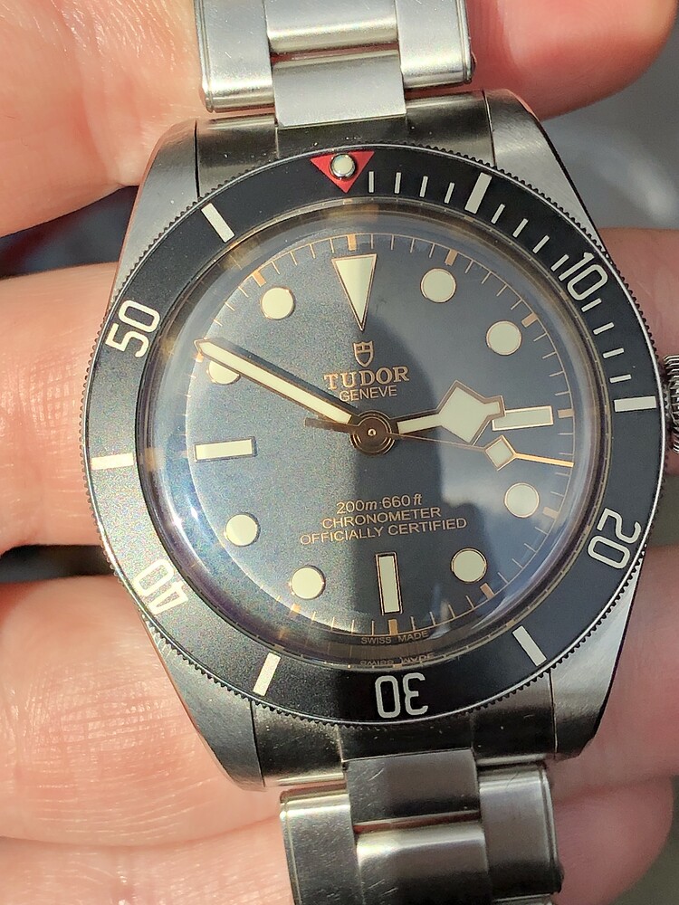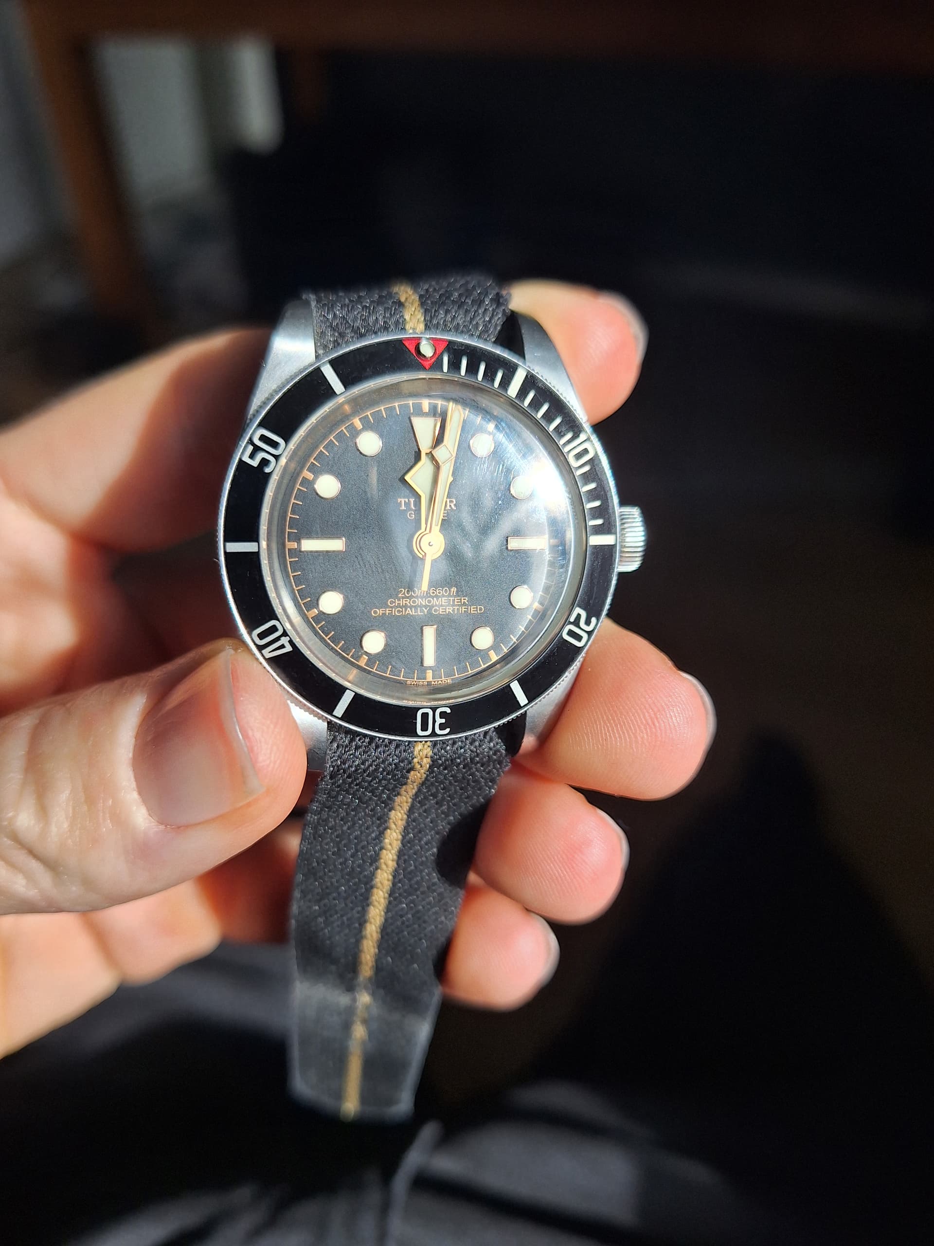 Hallo HF’ers, ik had onlangs een BB58 op het oog, specifiek de zwarte op een nato strap. Ik vroeg me af of de patina van de bezel normaal is of dat er mogelijk een andere bezel op is geplaatst? De cijfers/streepjes zijn zo goed als wit/zilver vergeleken met de meer beige/zandkleurige kleur op de fabrieksfotos. Het horloge komt uit 2019 en online is wel wat te vinden over een beetje patina/verlies van beige kleur maar ik kan nergens echt goede fotos vinden due daadwerkelijk evenveel kleur zijn verloren als deze. Foto ter illustratie van de bb58 in kwestie: