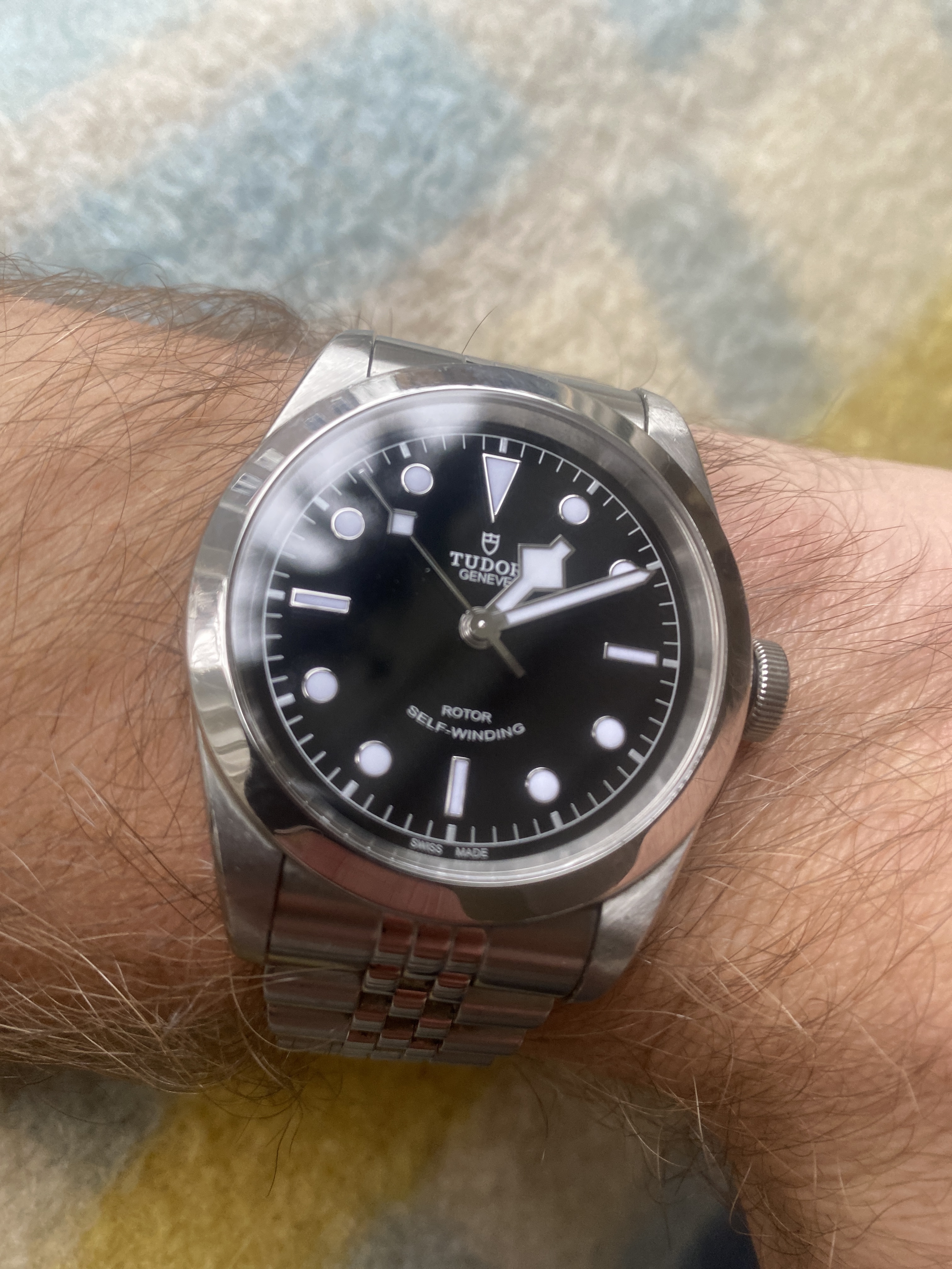 De lichte sunburst wijzerplaat wat doorloopt in de bezel bij de 39 (eigenlijk 40mm) vind ik zeker ook mooi maar drukt het geheel veel meer in “nette duiker” hoek ( voor mij tussen de 42 en bb58 in) .