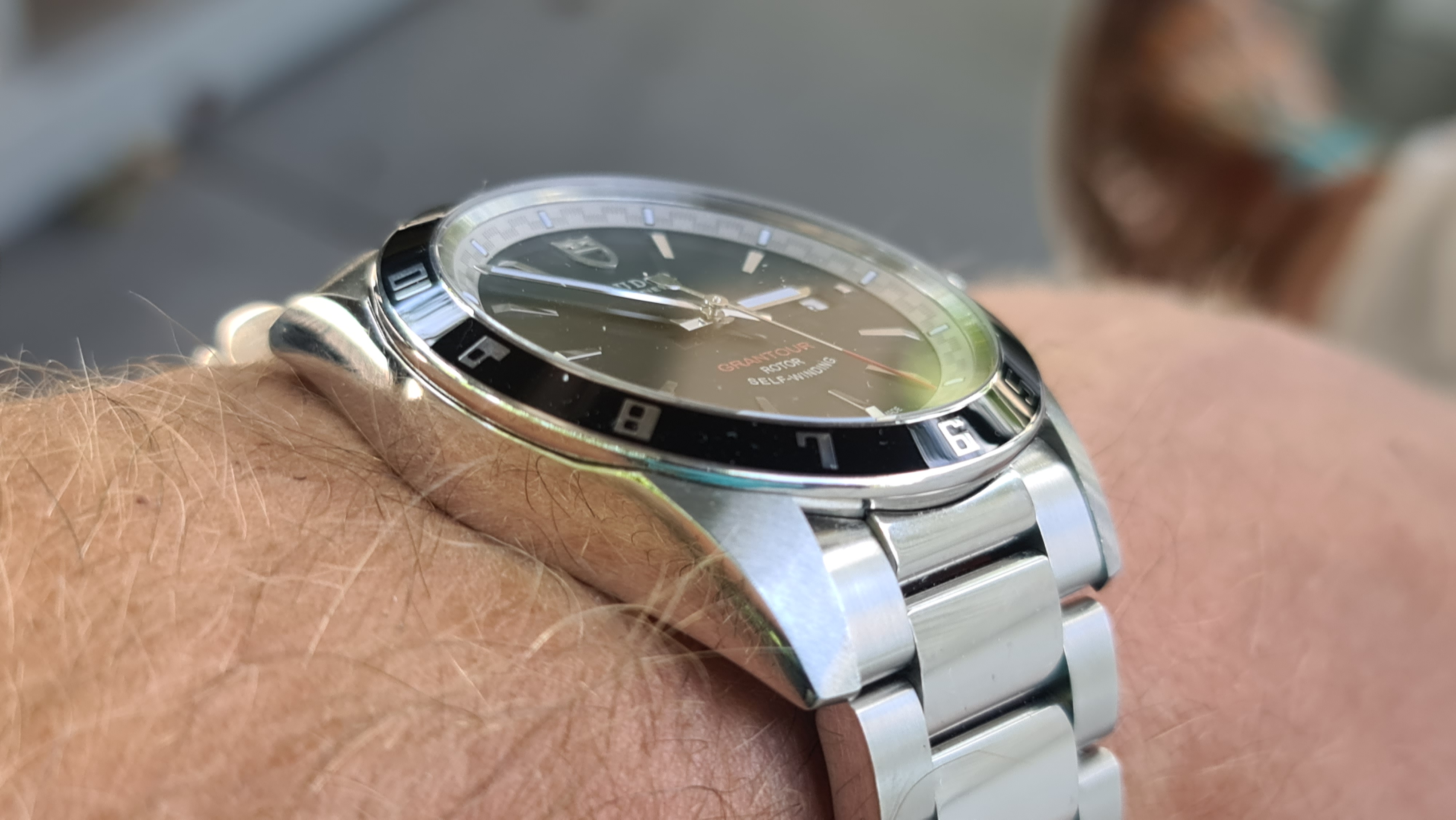 Ik vind hem geweldig. Meteen op de eerste foto al, maar in het echt is hij nog mooier. Hij draagt heerlijk, wat me verbaasd van zo’n zwaar horloge met zo’n enorme band.