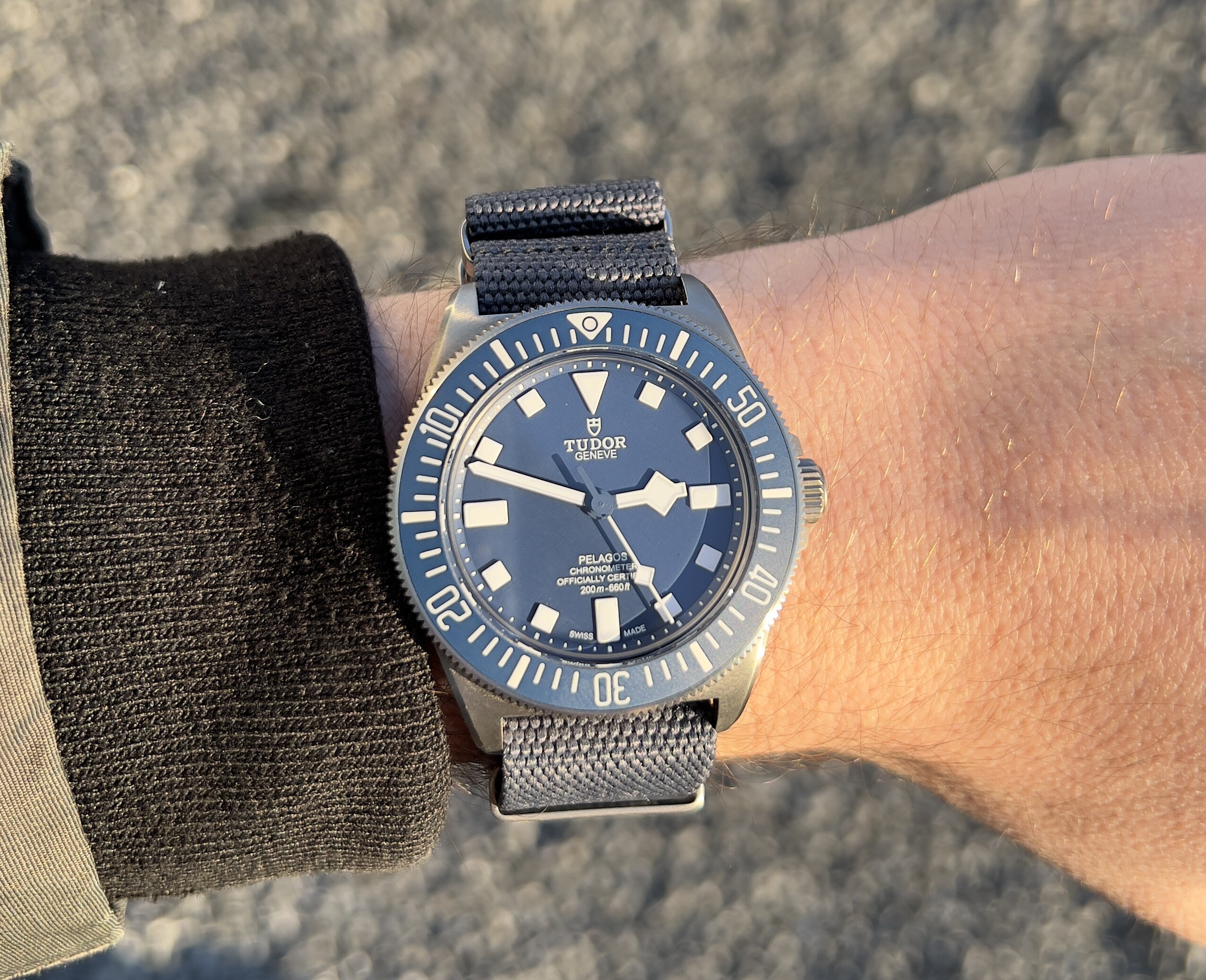 Terug van vakantie. Ik had maar een horloge om en had de Tudor thuis gelaten. Ben erg blij dat ie weer om kan!