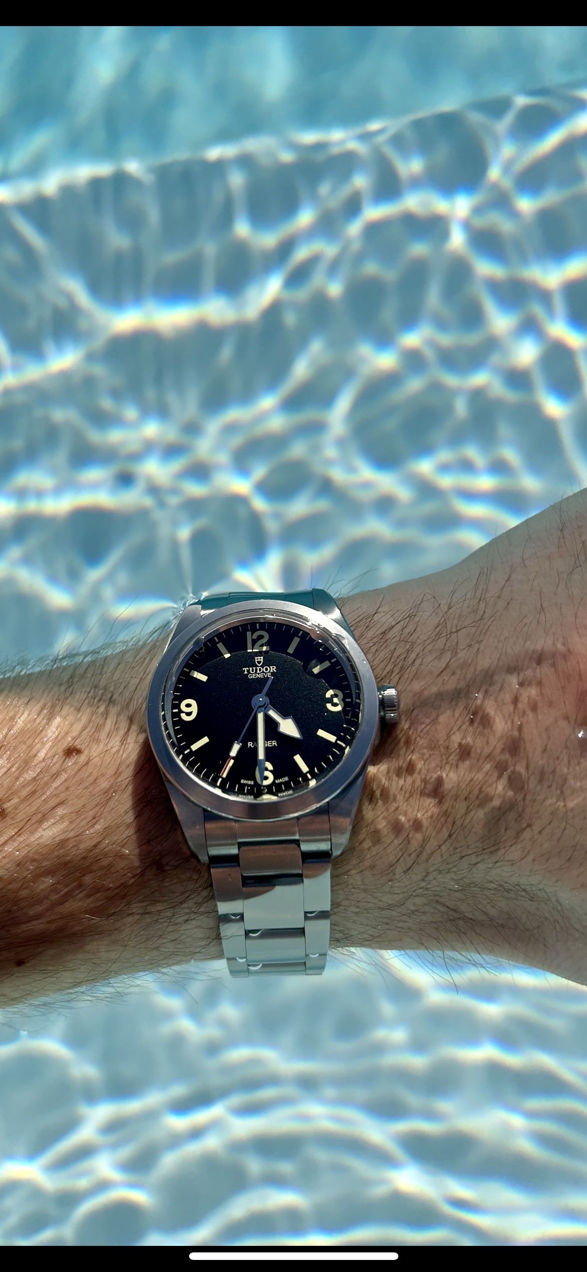 Het zit duidelijk in het glas als je er naar kijkt, het licht weerkaatst ook echt. Balen, maar ik ga ām wel op laten sturen⦠Maar eerst even met de horlogemaker naar kijken sowieso.