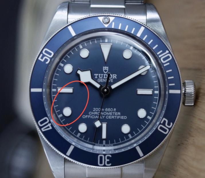 Het stoort me inderdaad niet. Het streepje is alleen te zien bij fel licht. Dan is de dial zelf ook helder blauw. Maar meestal is de dial vrij donker en is het streepje onzichtbaar.