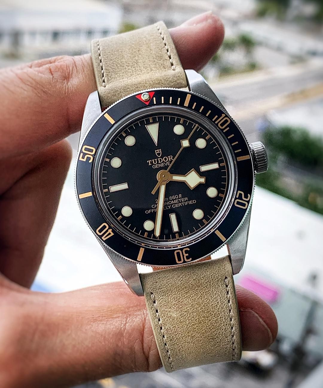 Het originele lederen Tudor bandje. Heb al eens gegoogeld om te achterhalen of het kalf, rund, roggenleer is? Combi met de kast en de dial is tof. Warmer dan de te lichtgrijze nato die er tevens bijgeleverd wordt