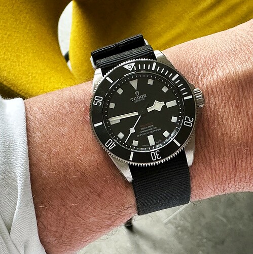 Weet niet wat Tudor adviseert maar bij Omega worden andere springbars gebruikt voor stalen band versus leer/nato (voor staal iets korter omdat je anders met geen mogelijkheid erbij kan als je demonteert, voor leer/nato wil je de langere hebben voor extra zekerheid dat ze blijven zitten):