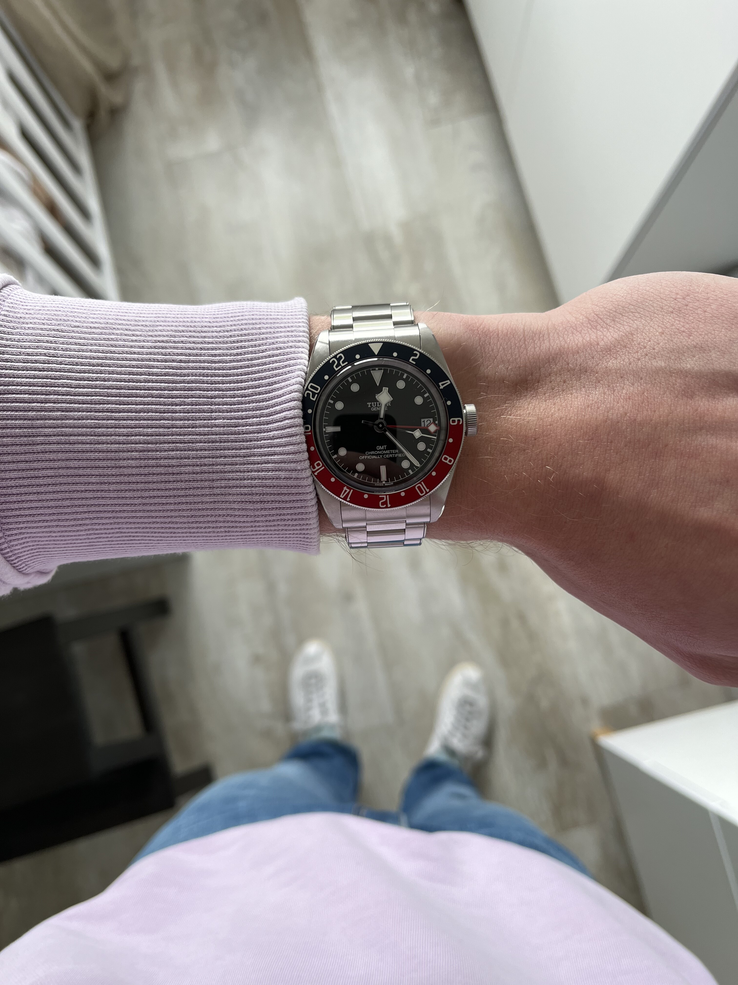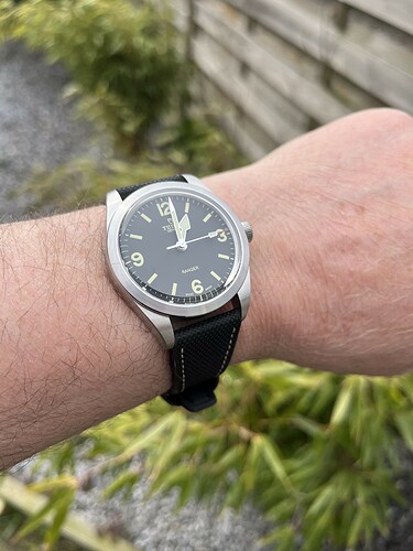 Vind hem van de zijkant zowaar mooier als van de voorkant. Nu pas zie je de opgelegde nummers, bezel, kast en band pas goed.