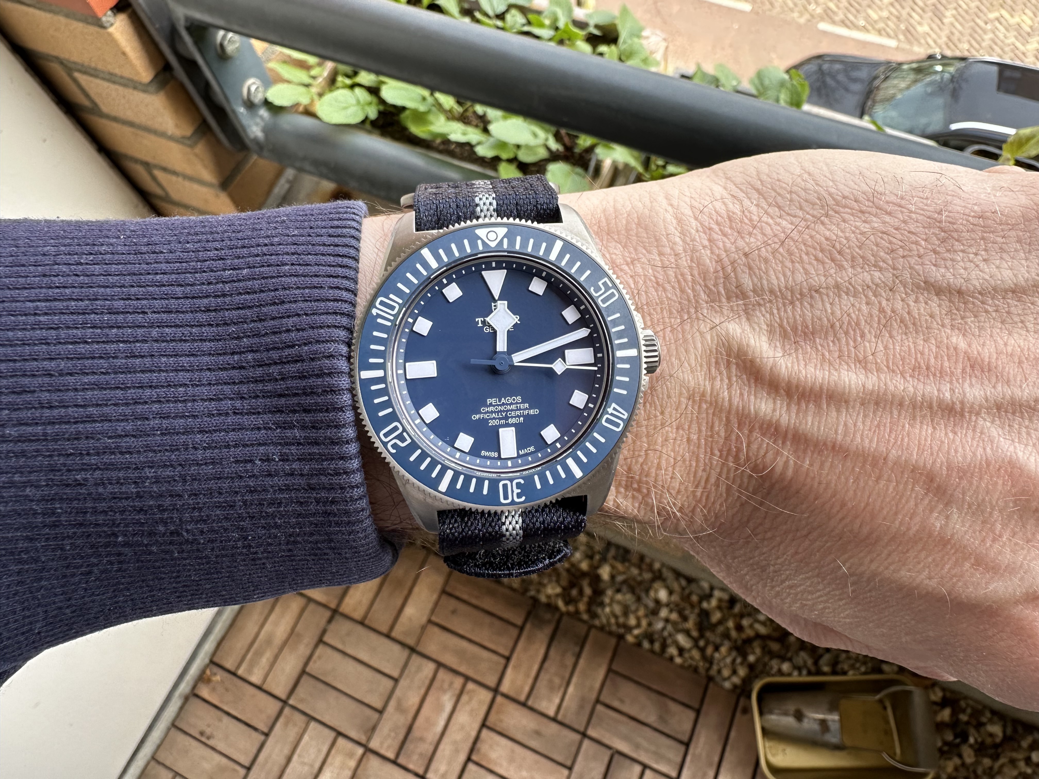 Het is een redelijk fors horloge en op de foto vertekent het natuurlijk wat, maar de lug to lug valt me reuze mee en daardoor is het alsnog heel draagbaar!