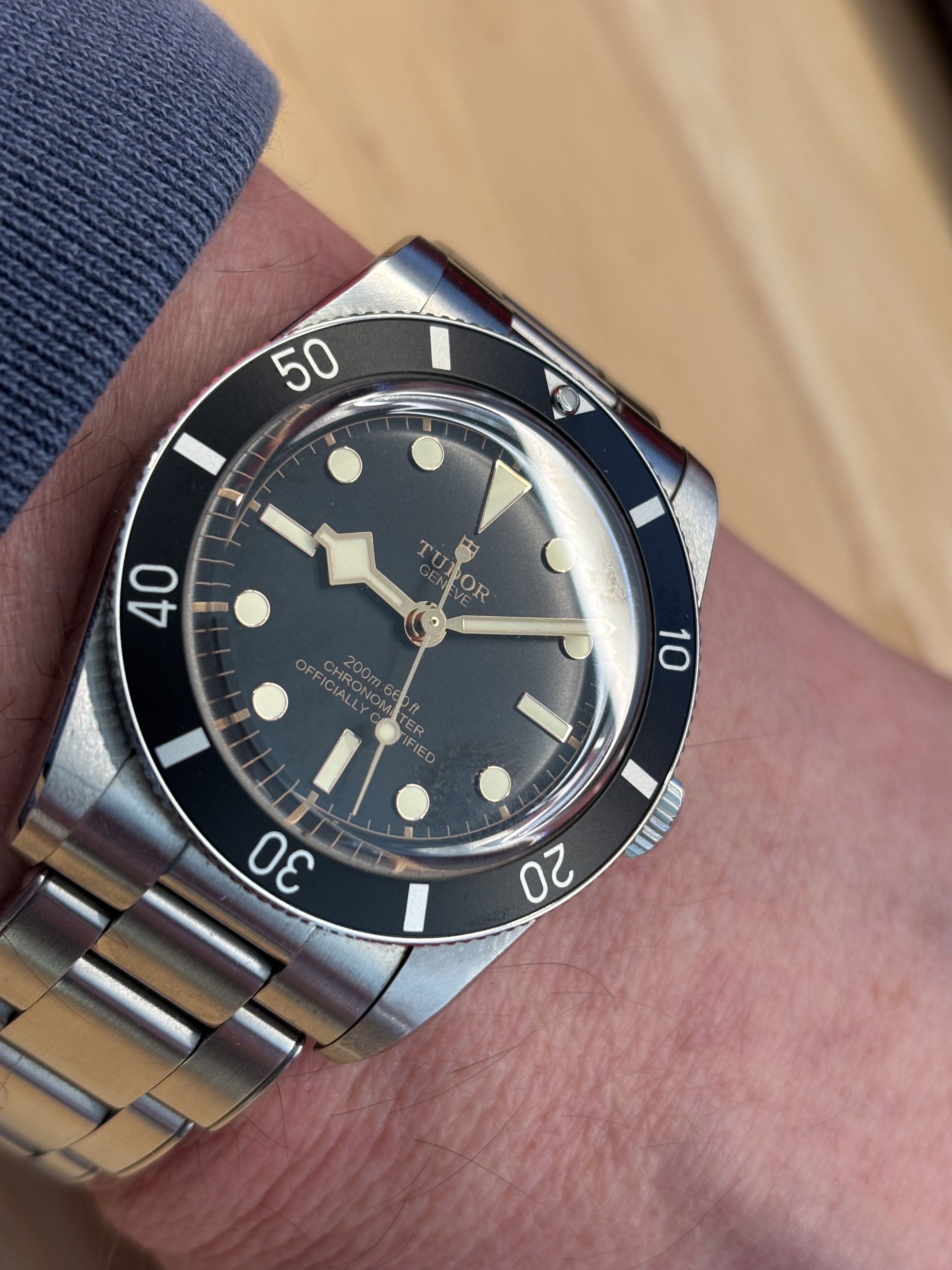 Ik vind de groene bezel in combinatie met de faux patina erg mooi.