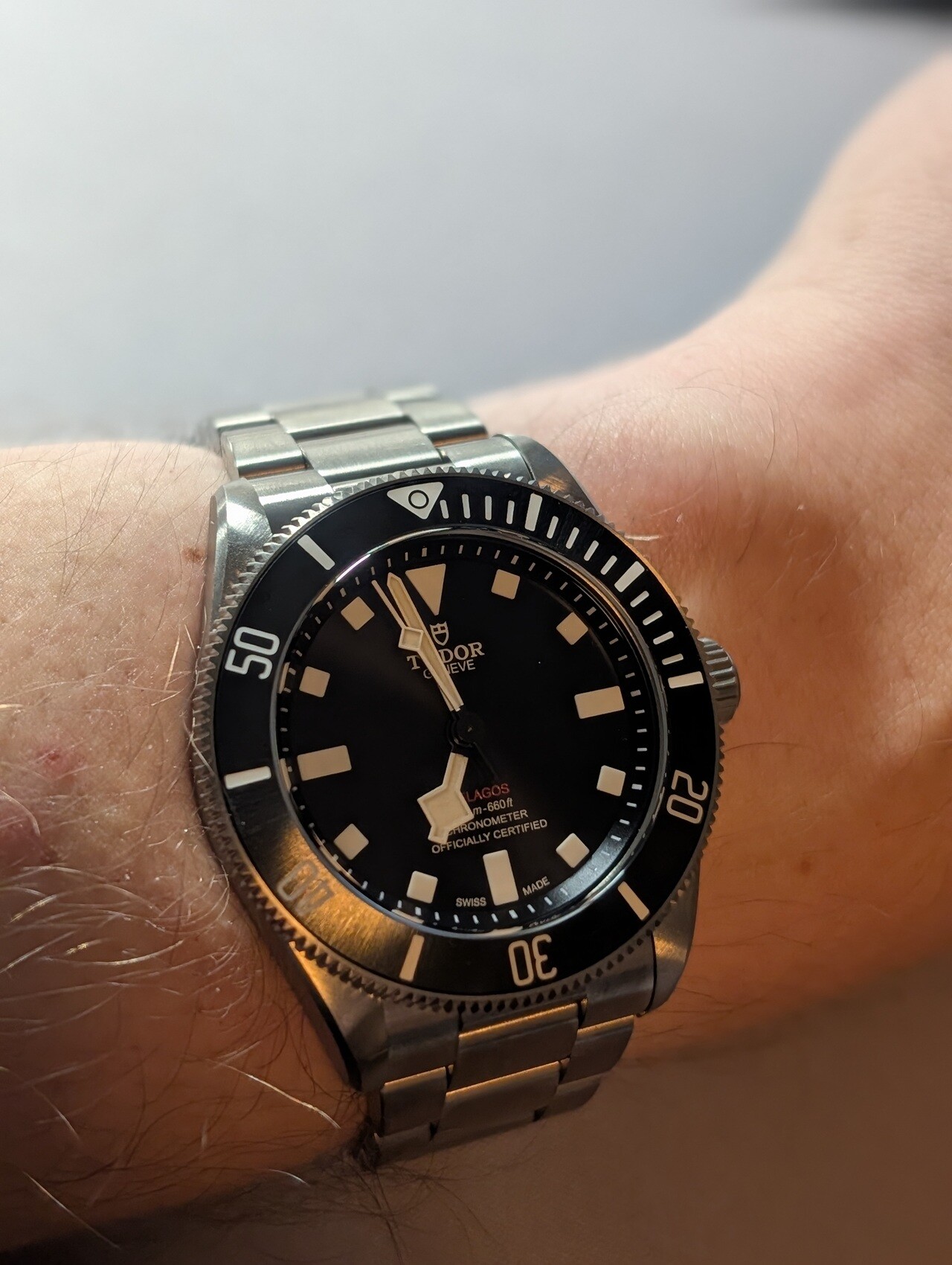 Nou, daar gaat ie. Ik ben trots bezitter van de Pelagos 39. Het horloge waarvan ik wist dat die nooit naar iemand anders zou gaan. Ik vind hem nog steeds fantastisch. Alleen ik heb een Smp 300 en een Certina ernaast die groter zijn en ik ben er achter gekomen dat zo rond de 41 a 42 mm mij het beste ligt.