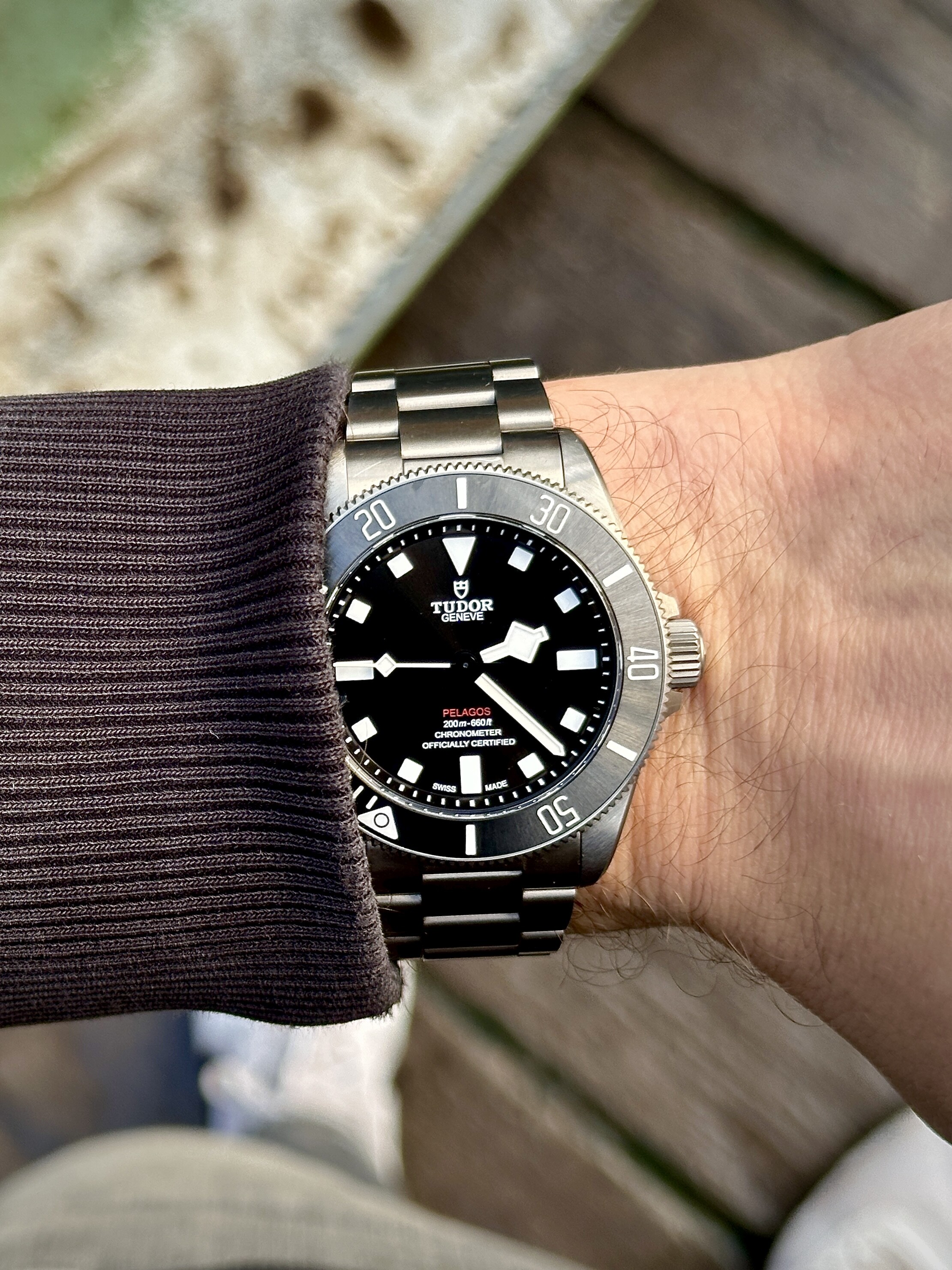 Ik zit nog even goed te kijken naar de Pelagos. En terugkomend op jouw vraag wat ik graag anders zou zien bij een eventuele update is met name die knurling om de bezel. Die vind ik toch net ff te subtiel op zo’n ruige beuker. Die mag echt wel wat grover