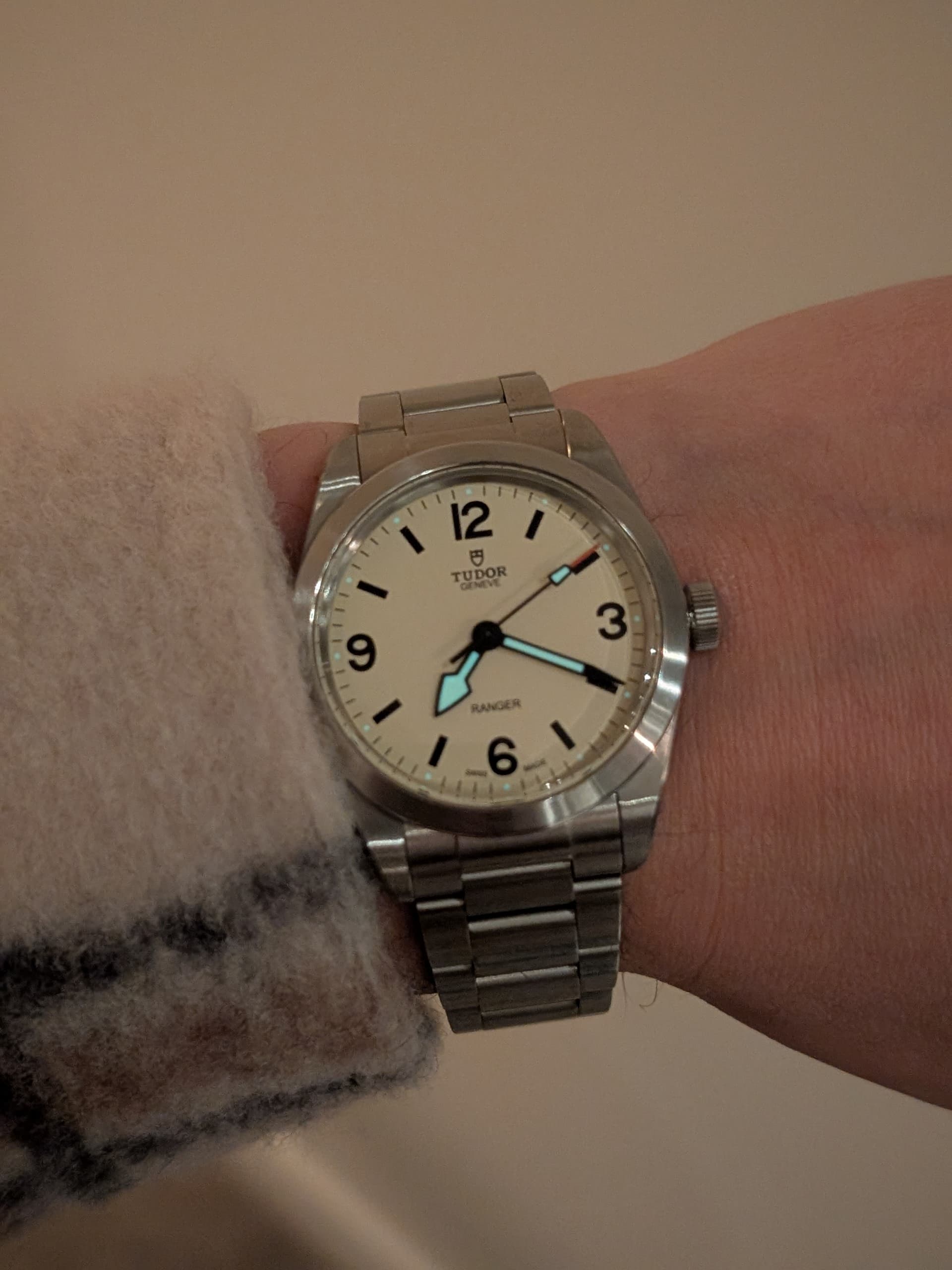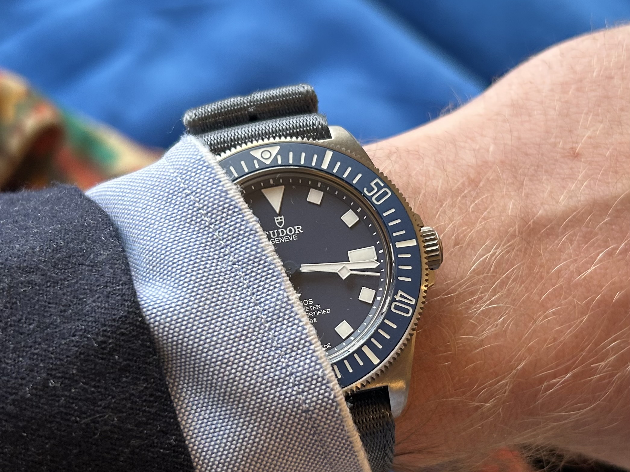 Die oogt me een beetje te ‘klein’, of plat … of wat dan ook. Ben echt wel op zoek naar een dikkertje zoals de Harrods of de 41mm rooie ofzo. Beetje vergelijkbaar met mijn Pelagos. Maar goed, het potje is nog onvoldoende gevuld op dit moment.